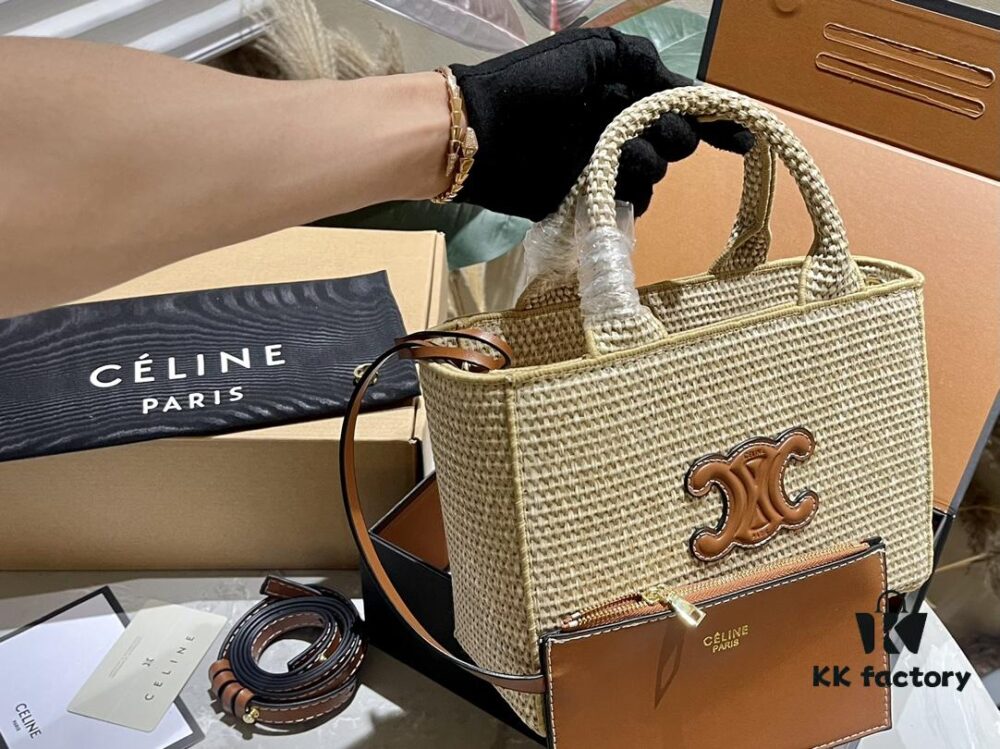 Celine Wicker Handwoven Raffia Bag, Official Website Style, Essential for Summer Beach Travel