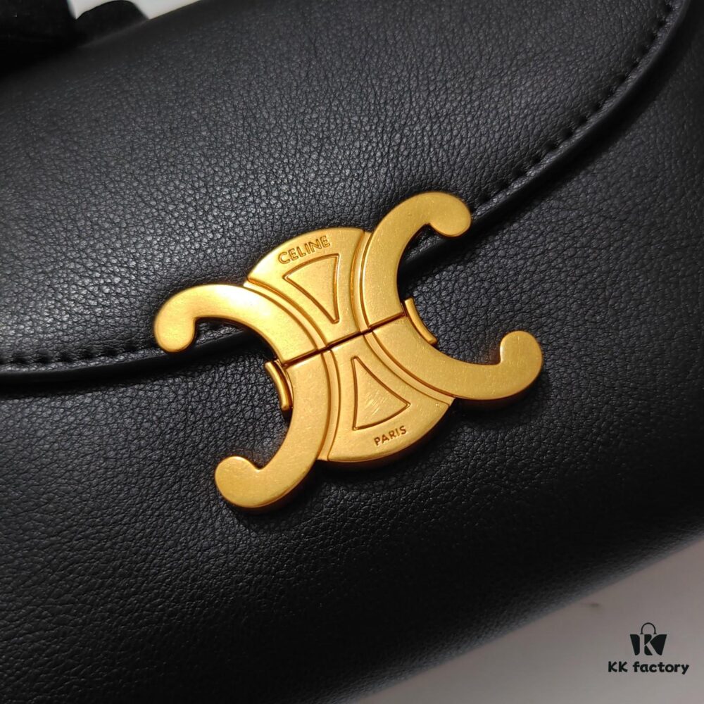 Top Quality Original Celine Triomphe Classic Shoulder Bag, New Glossy Black and Gold Design