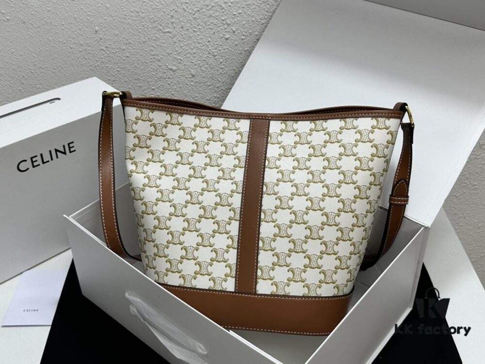 Celine Large Triomphe Canvas Nano Bucket Bag – Stylish Vintage Series with Signature Print