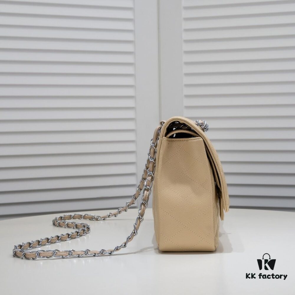Beige Chanel Classic Bag, Century Iconic Style, Made with Precision Craftsmanship, Imported Caviar Calfskin with Original Hardware, Quilted Pattern Fullness, Perfect Soft Silhouette