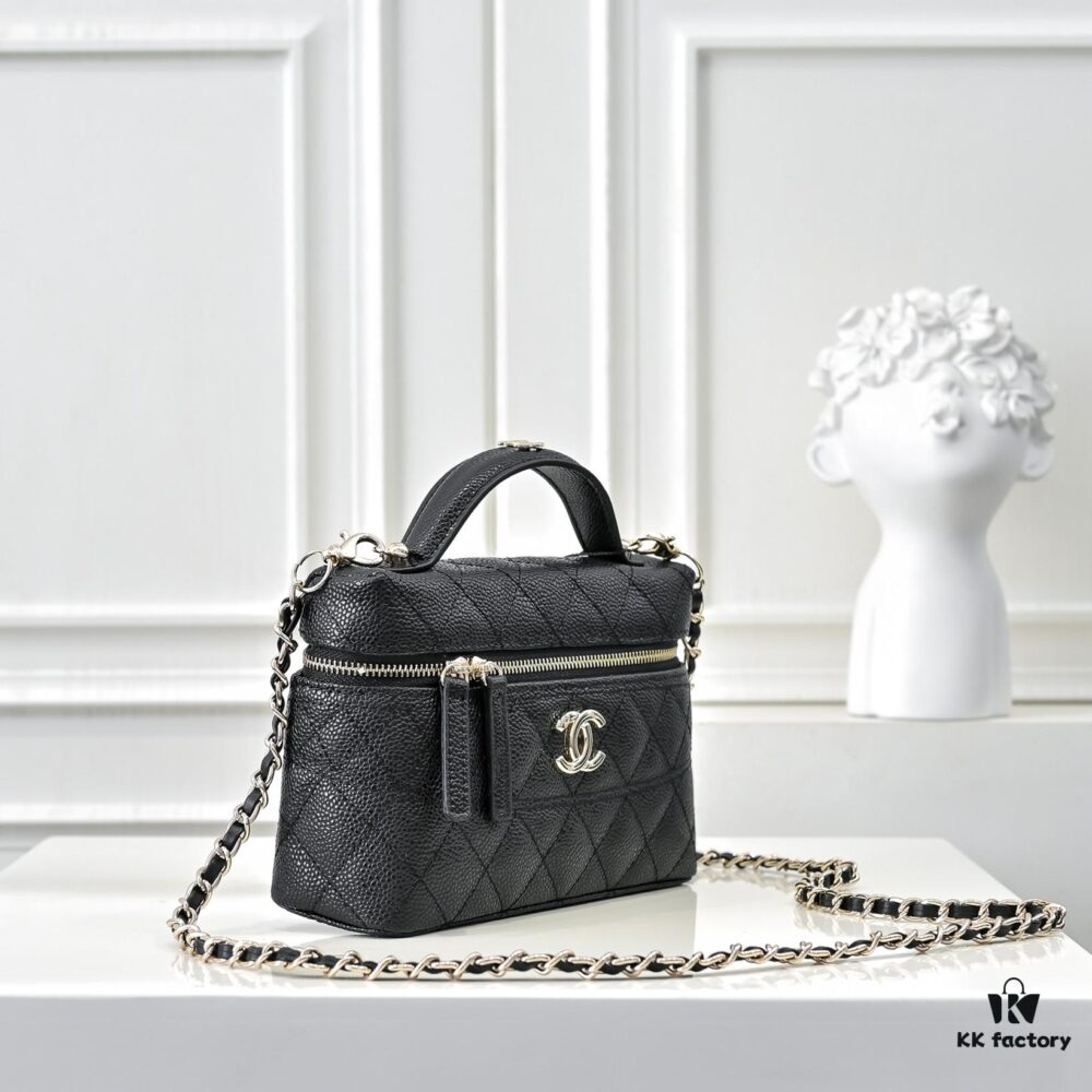Chanel 25C Spring/Summer New Lunchbox Bag, Calfskin with Metal Chain Design, Double C Logo, Compact Size Fits Phone and Daily Essentials