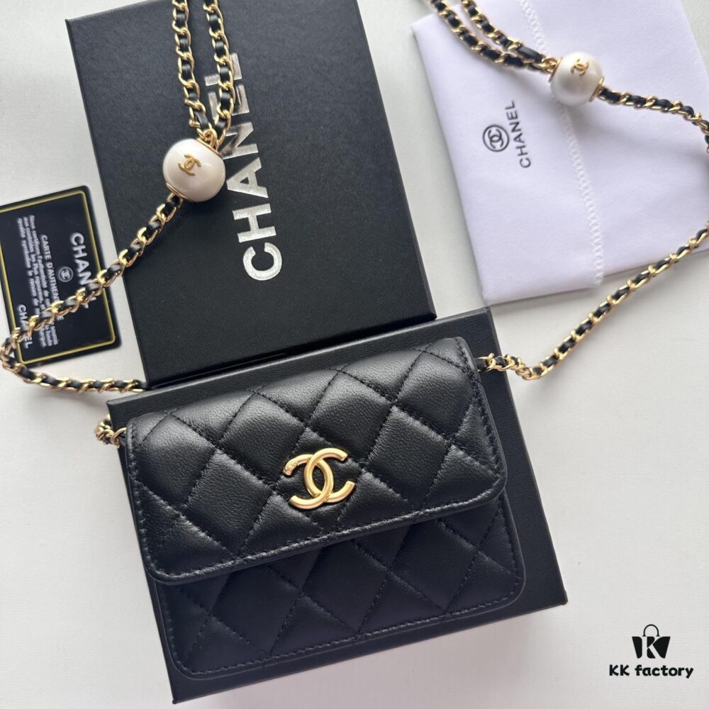 CHANEL Caviar Black / Gold 23K Classic Quilted Lambskin Wallet – New Arrival CF Mini Card Holder