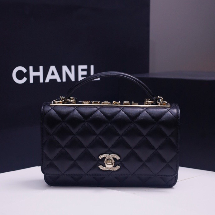 CHANEL 25P New Handle Top Handle Bag Mini in Black and Gold Lambskin