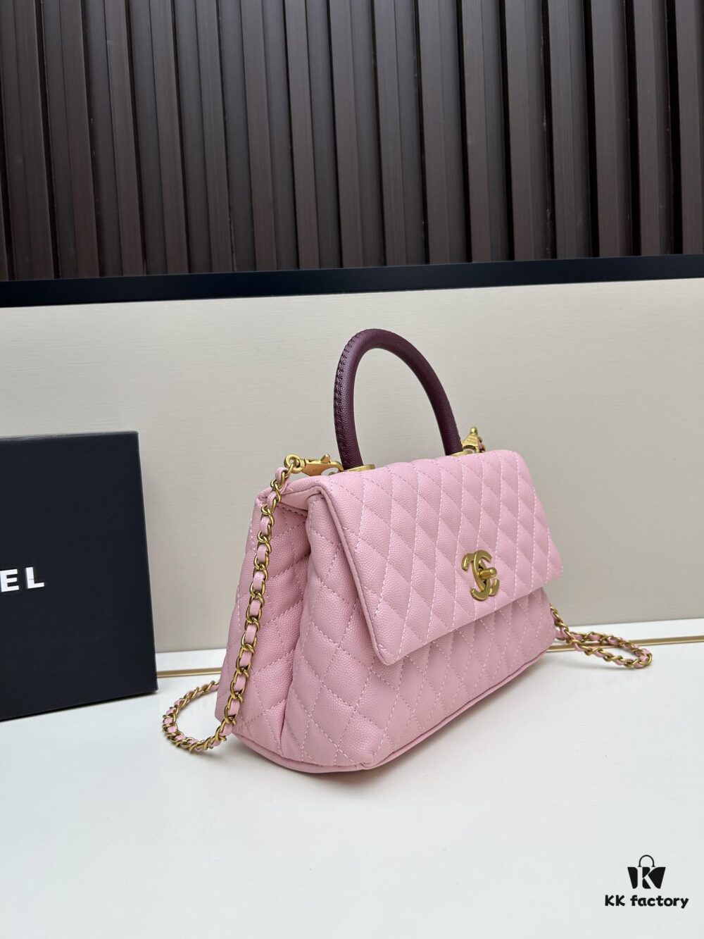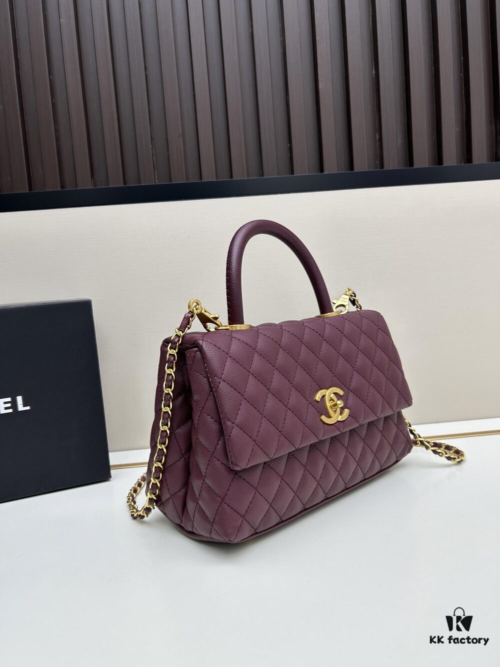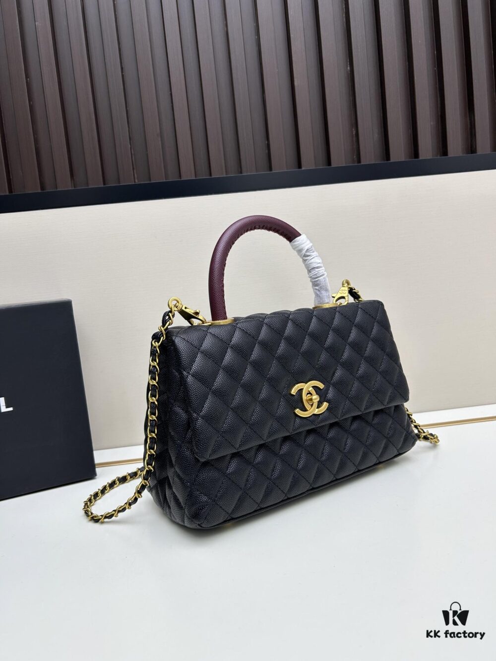 Chanel Coco Handle with Box, Black Calfskin with Red Handle