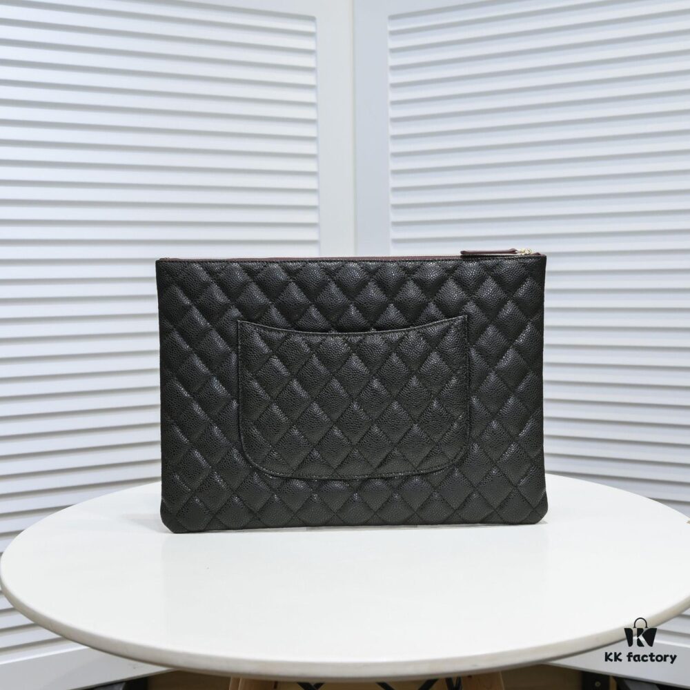 Chanel Gold Button Caviar Quilted Leather Clutch with Box