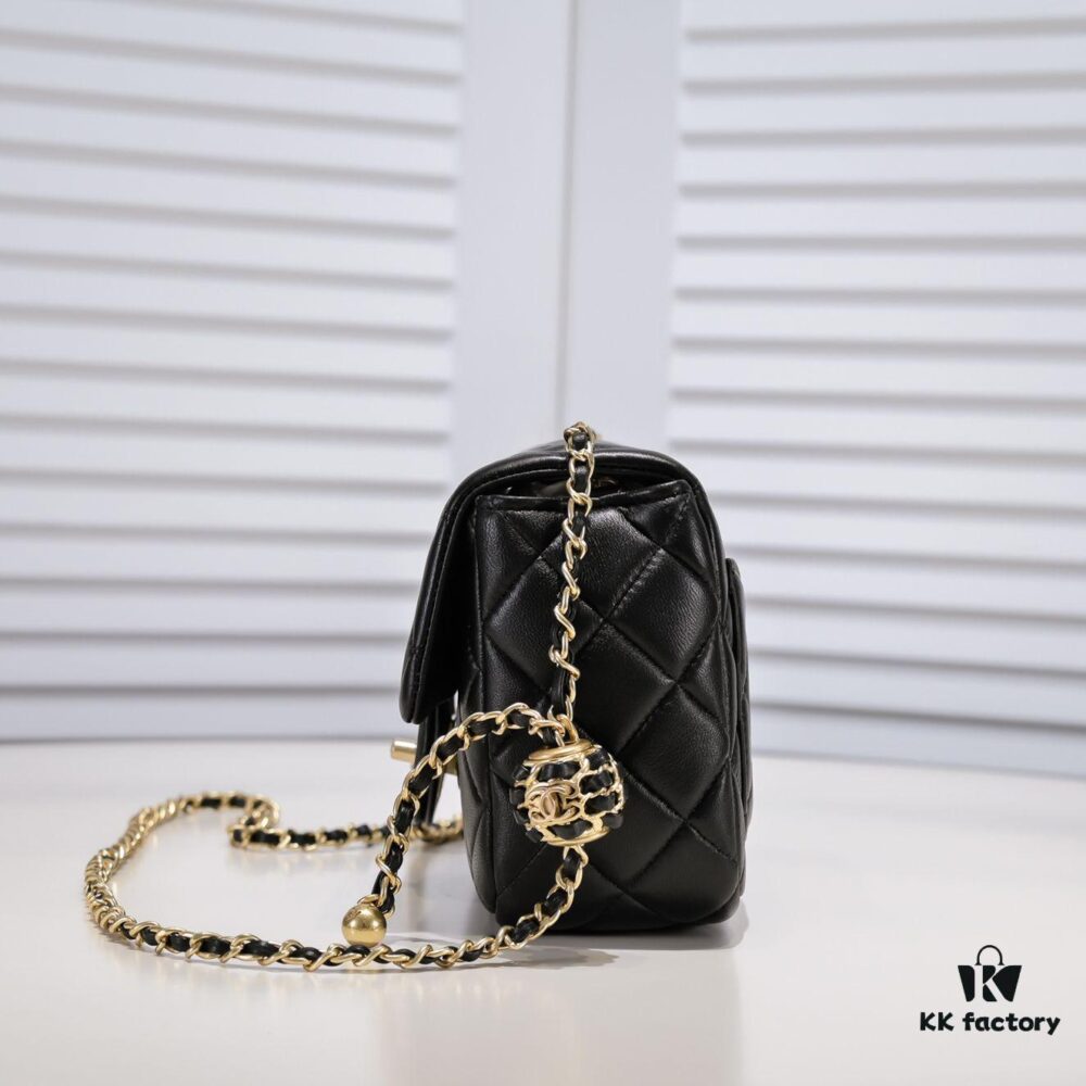 Chanel Hot-Selling Metal CF Mini Flap Bag with Hollow Woven Rope and Gold Ball Detail