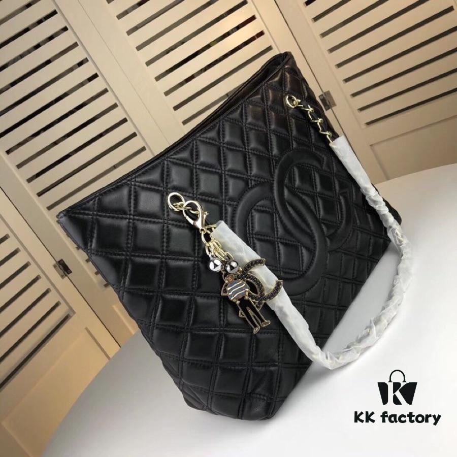 Chanel Robot Pendant Zipper Tote Bag Soft Lambskin Shopping Bag with Double C Logo