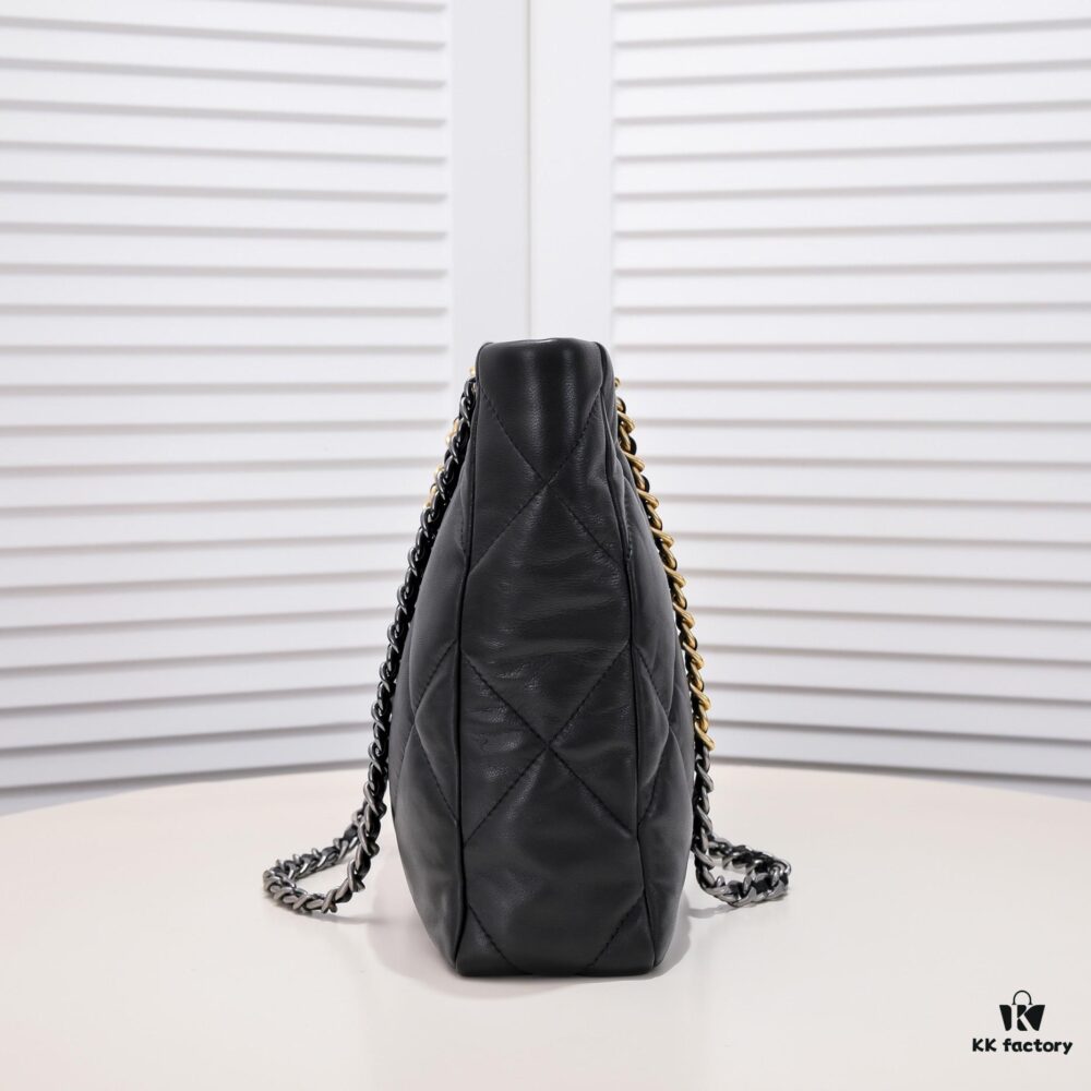 Large CHANEL 22B 19BAG Tote Black and Gold Italian First-Class GR Lamb Leather
