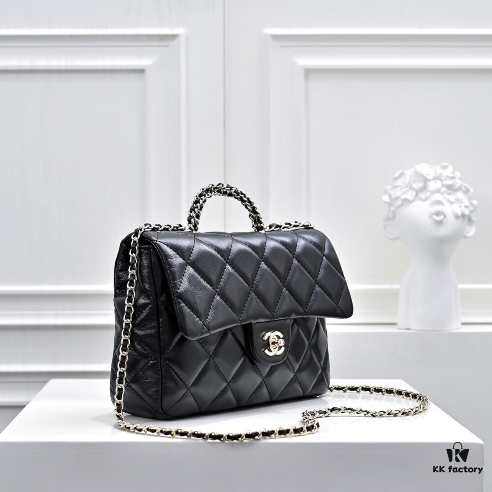 Large Size 👑 Chanel 24B New Collection Top-Grain Waxed Leather Bag with Braided Metal Chain Handle