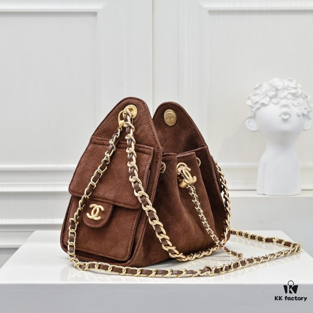 Mini Chanel 25C Bag Hobo Suede Crossbody Bucket Bag with Vintage Coin Toggle Drawstring, Diamond Quilting, Retro Black Gold Hardware, Classic Chain Design