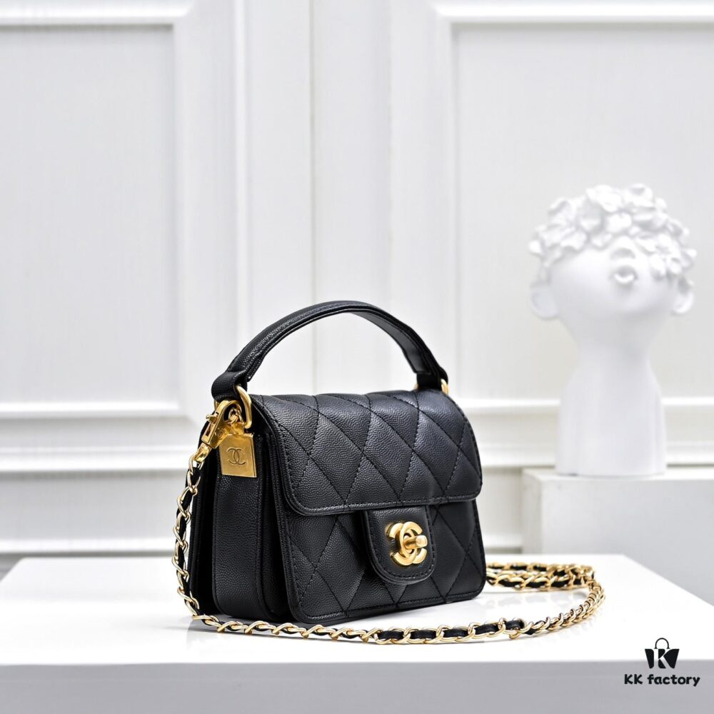 Mini Chanel 24K Autumn-Winter New Arrival Caviar Leather Bag with Unique Texture, Detachable Strap for Handheld or Crossbody Wear