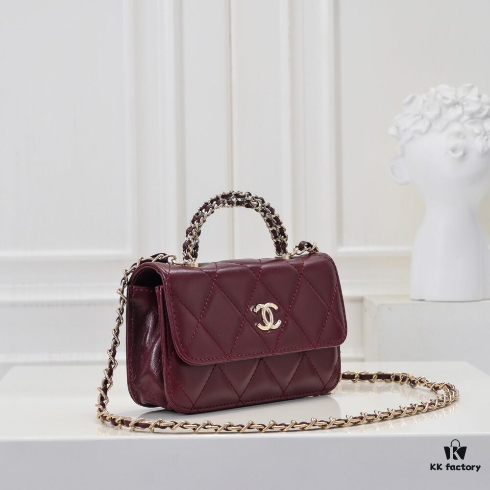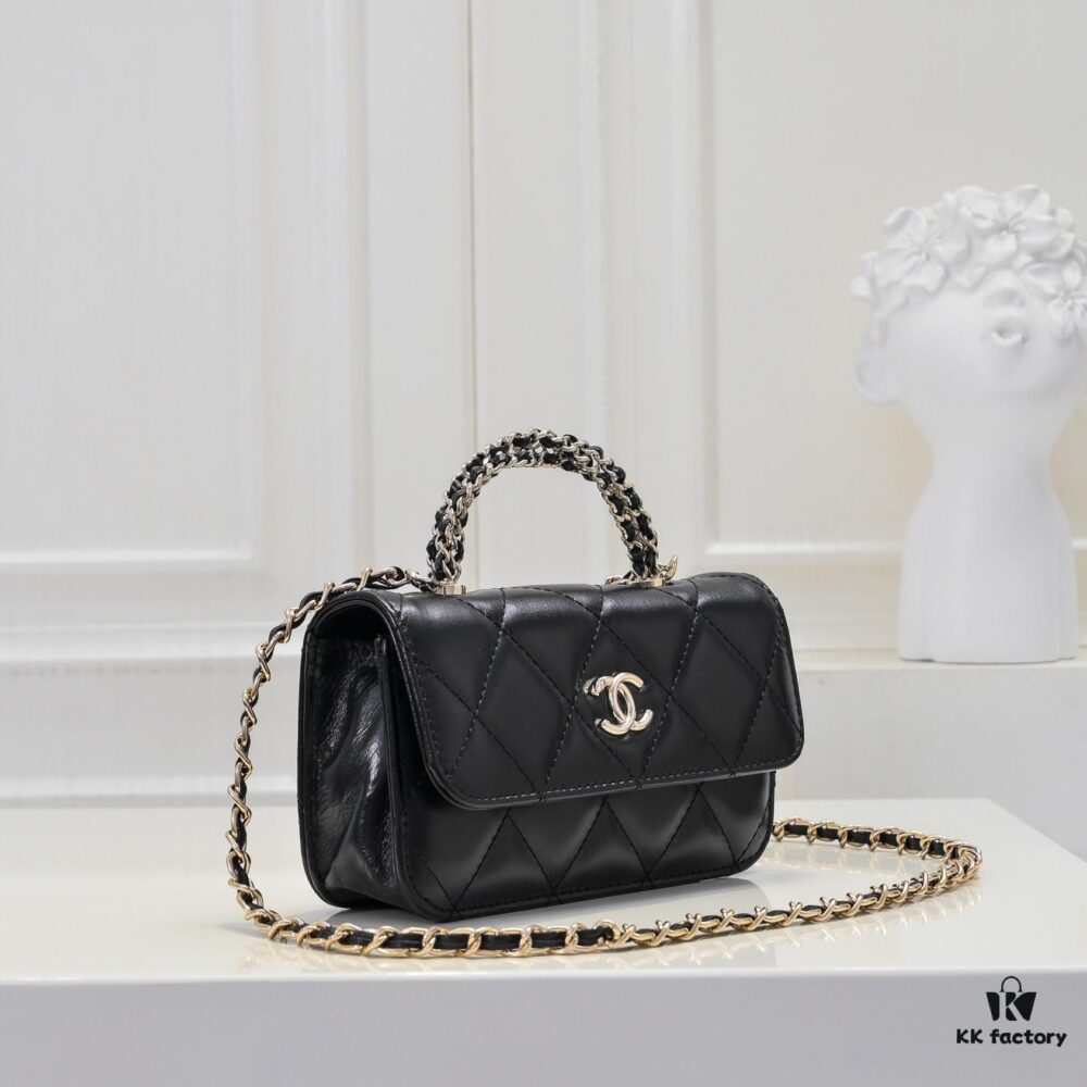 Mini Chanel 24B New Collection WOC. Top-Grain Oil-Waxed Leather, Beauty Meets Durability, Braided Handle Reaches New Heights – ‘Braided’ Metal Chain Handle Composed of Three Separate Chains Forming a Fixed Integrated Handle