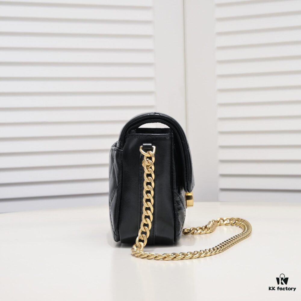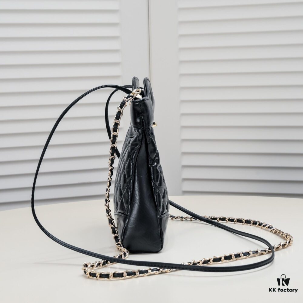 Mini Chanel 25C Hobo Bag in Quilted Calfskin with Vintage Gold Buckle Drawstring Bucket Design + Diamond Stitching + Retro Black and Gold Tone, Classic Chain Strap, Elegant and Versatile