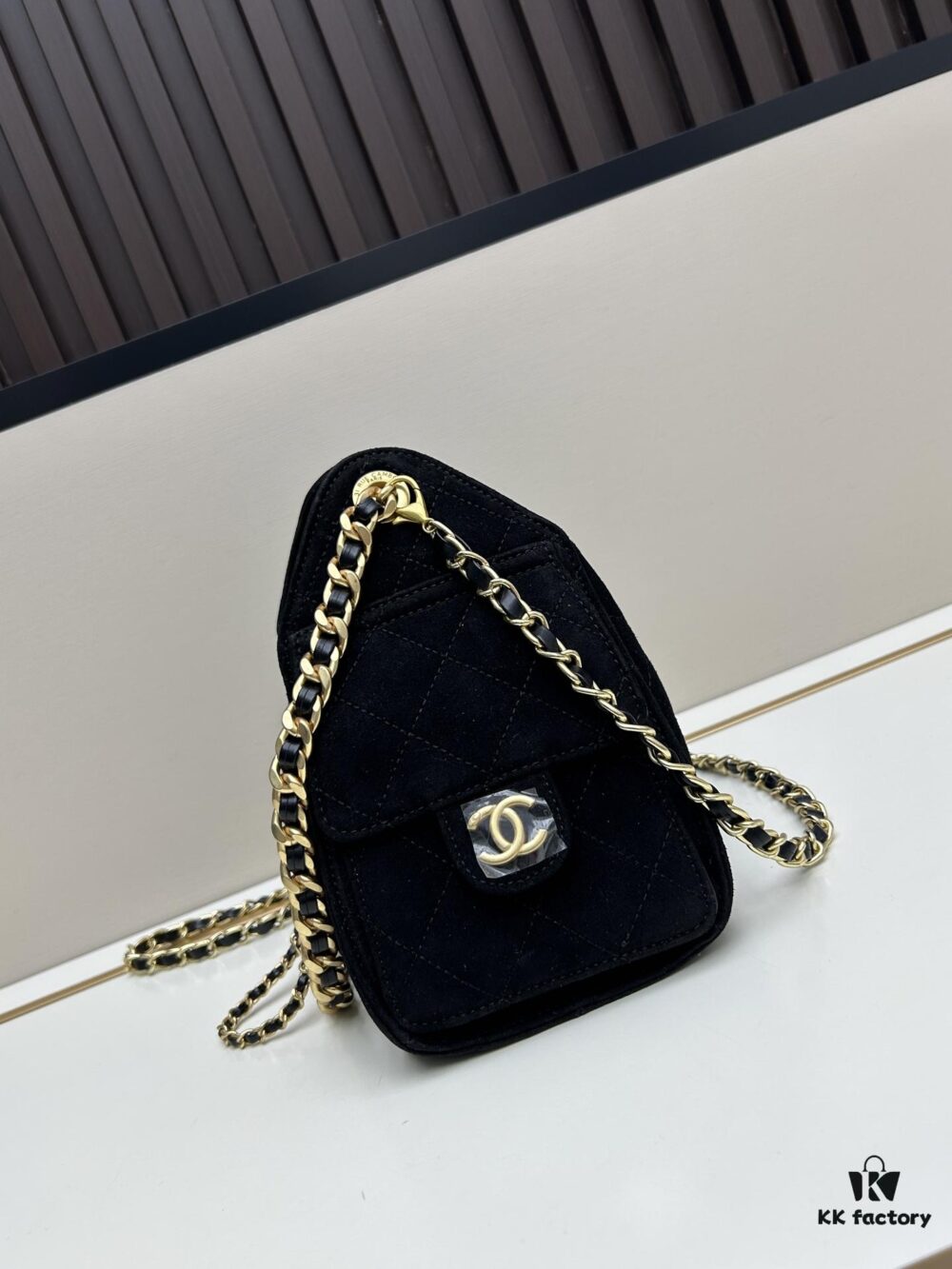 Mini Chanel 25C Hobo Bag in Suede Matte Finish – Vintage Coin Button Drawstring Bucket Bag with Quilted Pattern and Retro Black-Gold Chain
