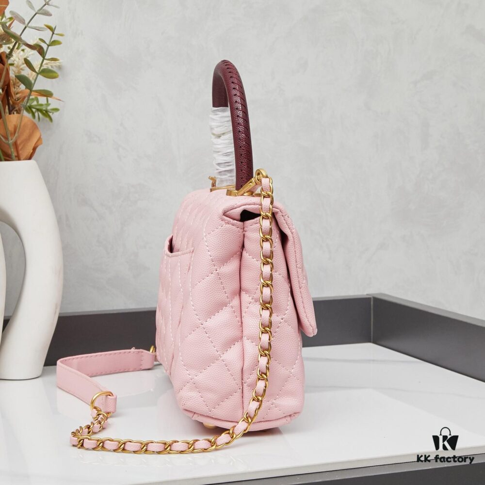 New Arrival with Box Chanel Coco Handle Black Calfskin Red Handle