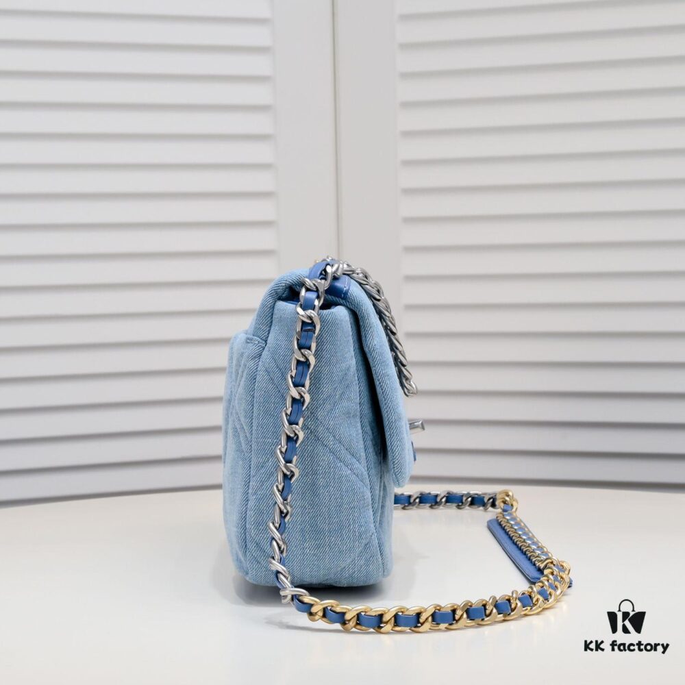 Chanel 22p Spring-Summer Collection New 19Bag Denim Light Blue Sand Silver Hardware
