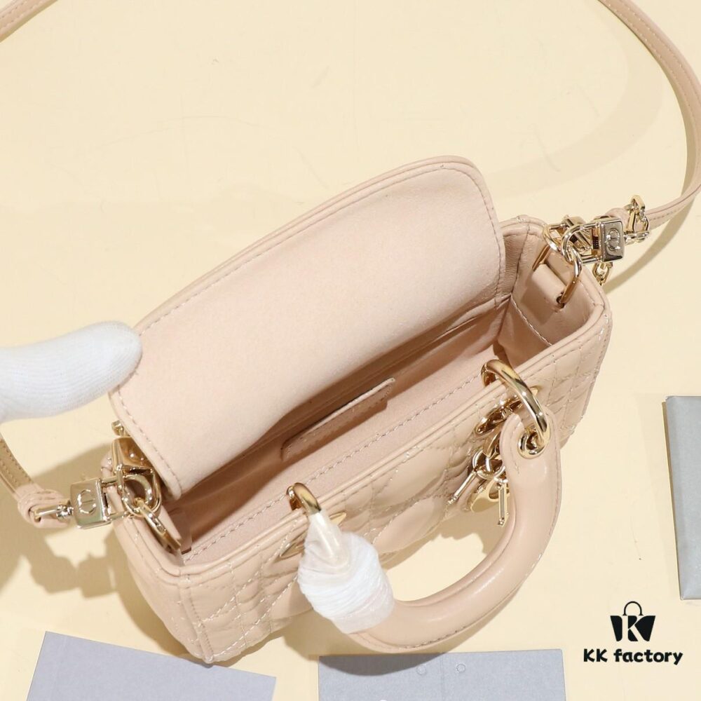 Beige Lambskin Cannage Lady D-Joy Bag