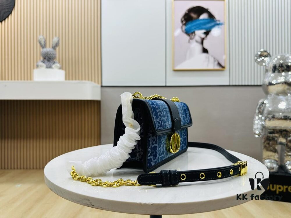 30 Montaigne East-West Chain Bag in Blue Denim Dior Oblique Jacquard