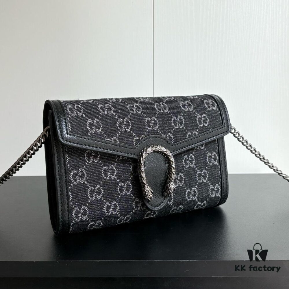 Authentic #With Box – GG Dionysus WOC Chain Mini Handbag / Wallet in Black Denim, Style No. 401231, 20×13×6cm