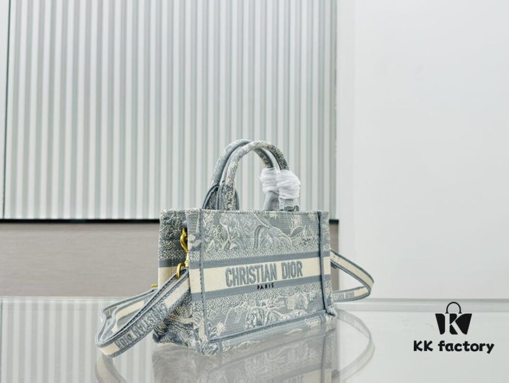 Dior Book Tote 24 Spring Mini Size with Shoulder Strap in Grey Tiger