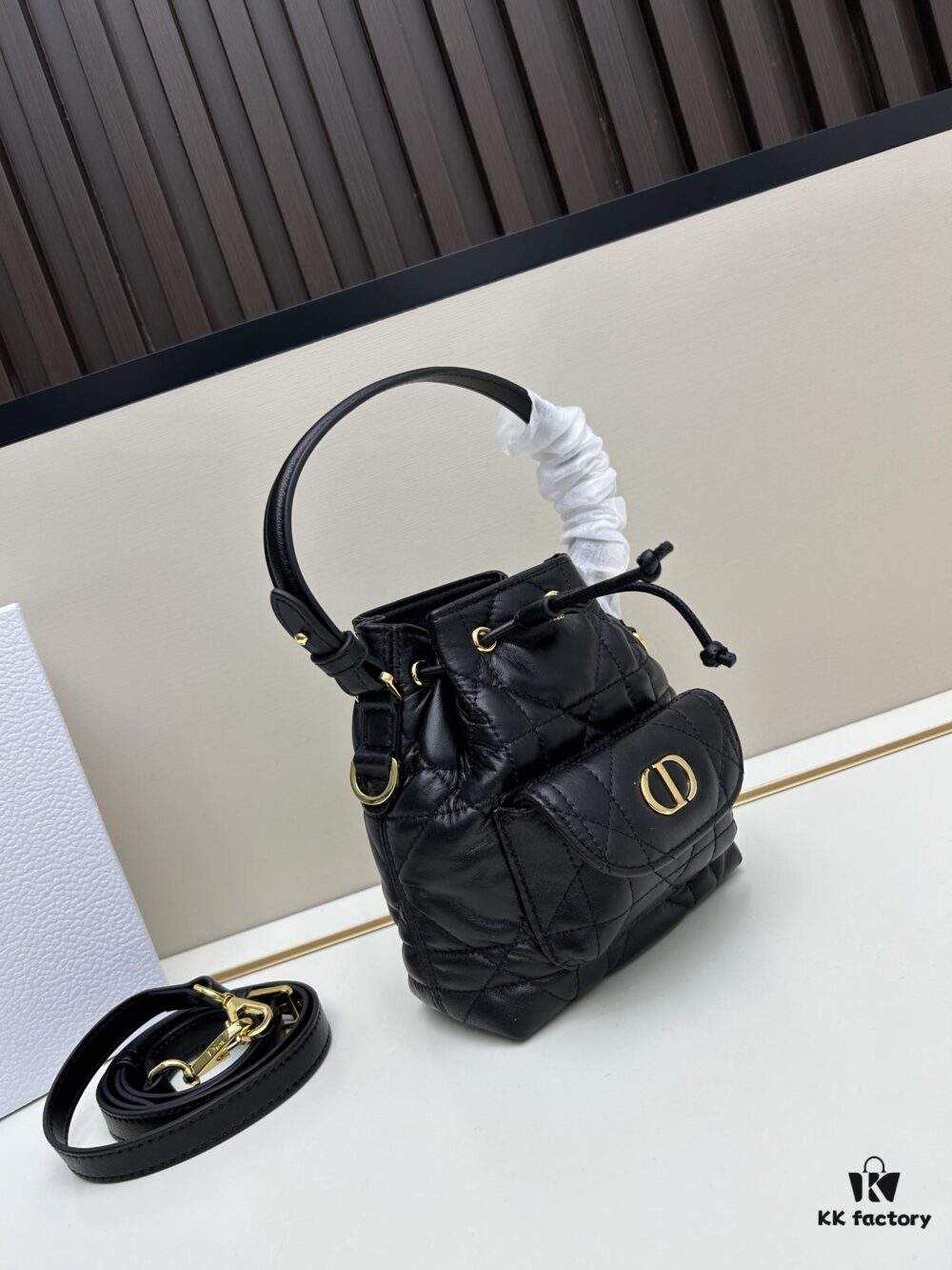 Dior Caro Mini Bucket Bag in Black Lambskin from the 2025 Fall Collection