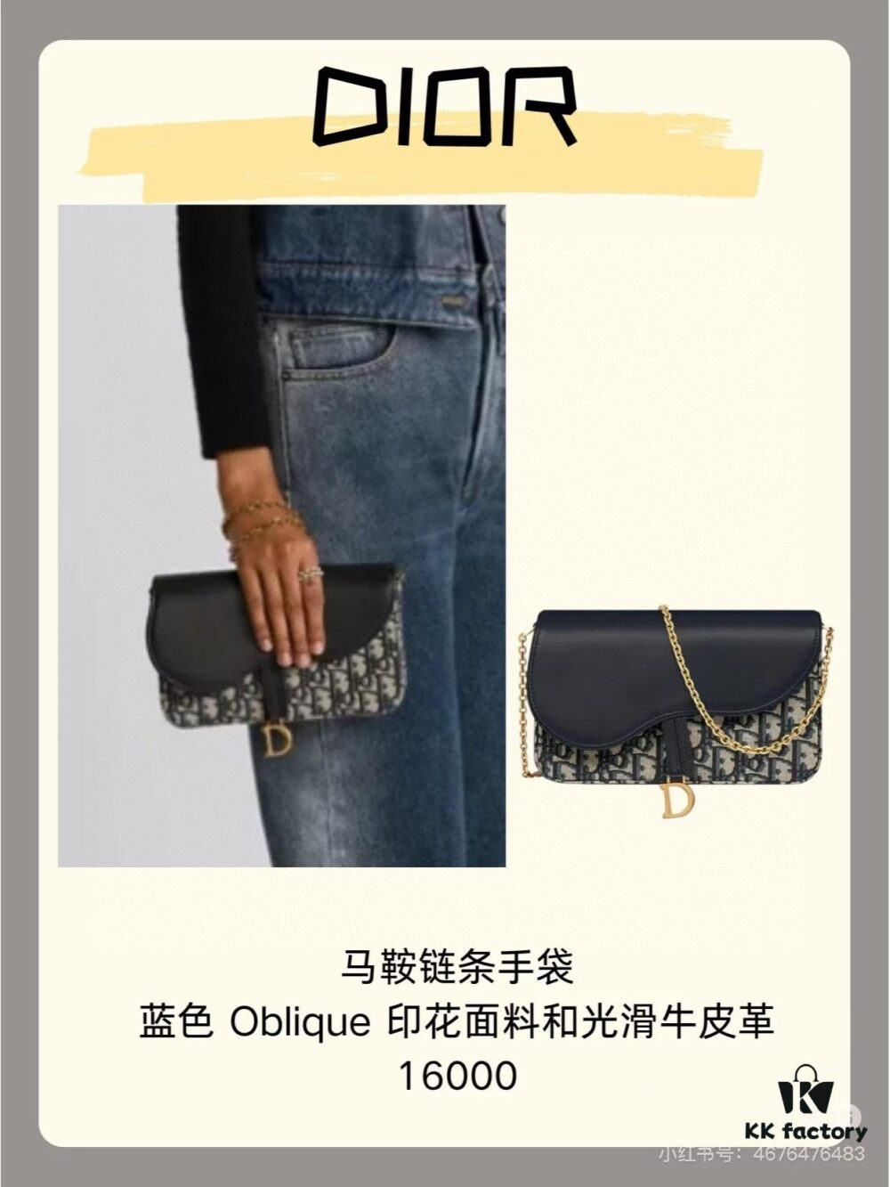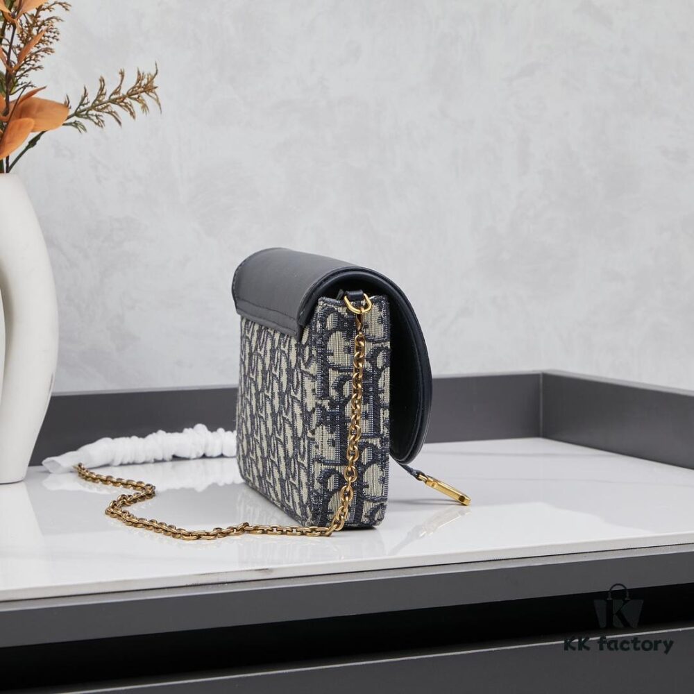 Dior Saddle Bag Series Crossbody Bag with Box ♥️ Comes with Chain, Can Be Used as Clutch or Crossbody, Includes Six Card Slots and Coin Purse, Practical Design, Size 19*13, Model No. 6602, Deep Blue