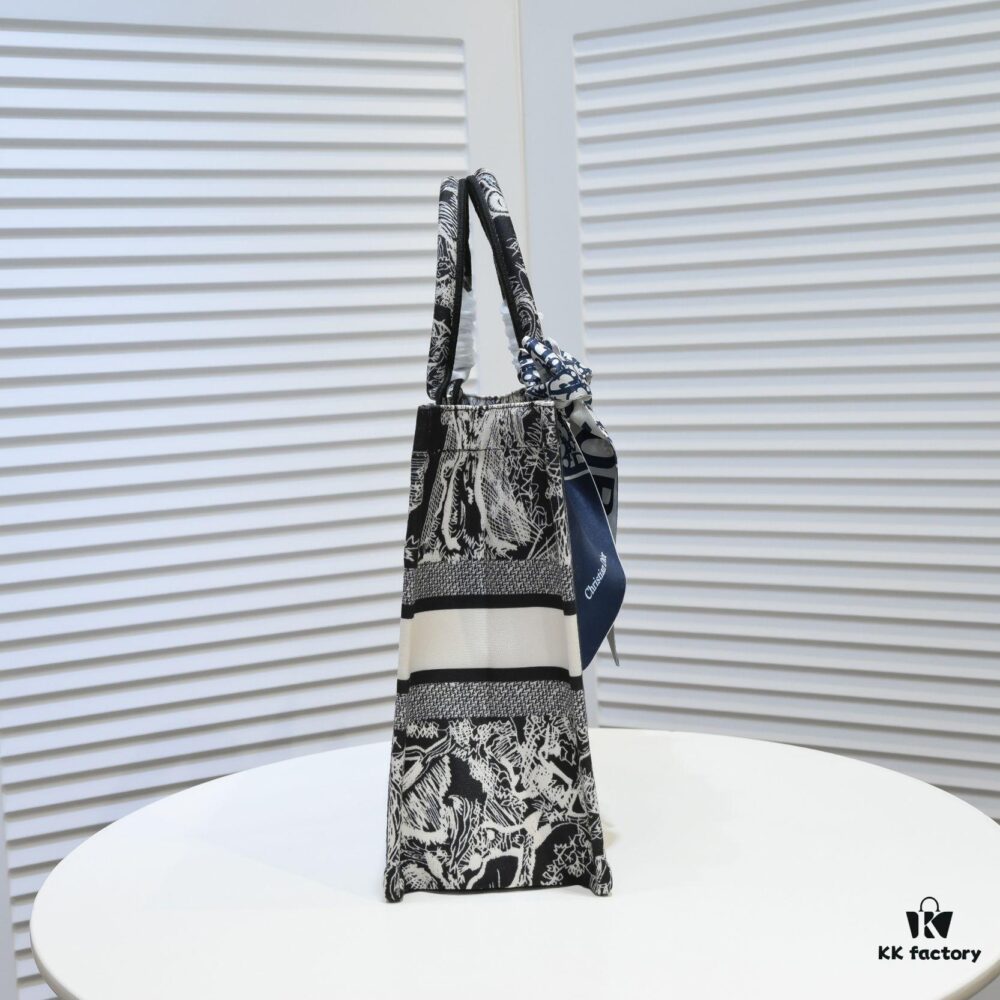 Dior Small Shopping Bag with Silk Scarf, Bound Edges, Model No. 8034, 36*27*16cm, Imported Fabric, Limited Edition, Celebrity Style