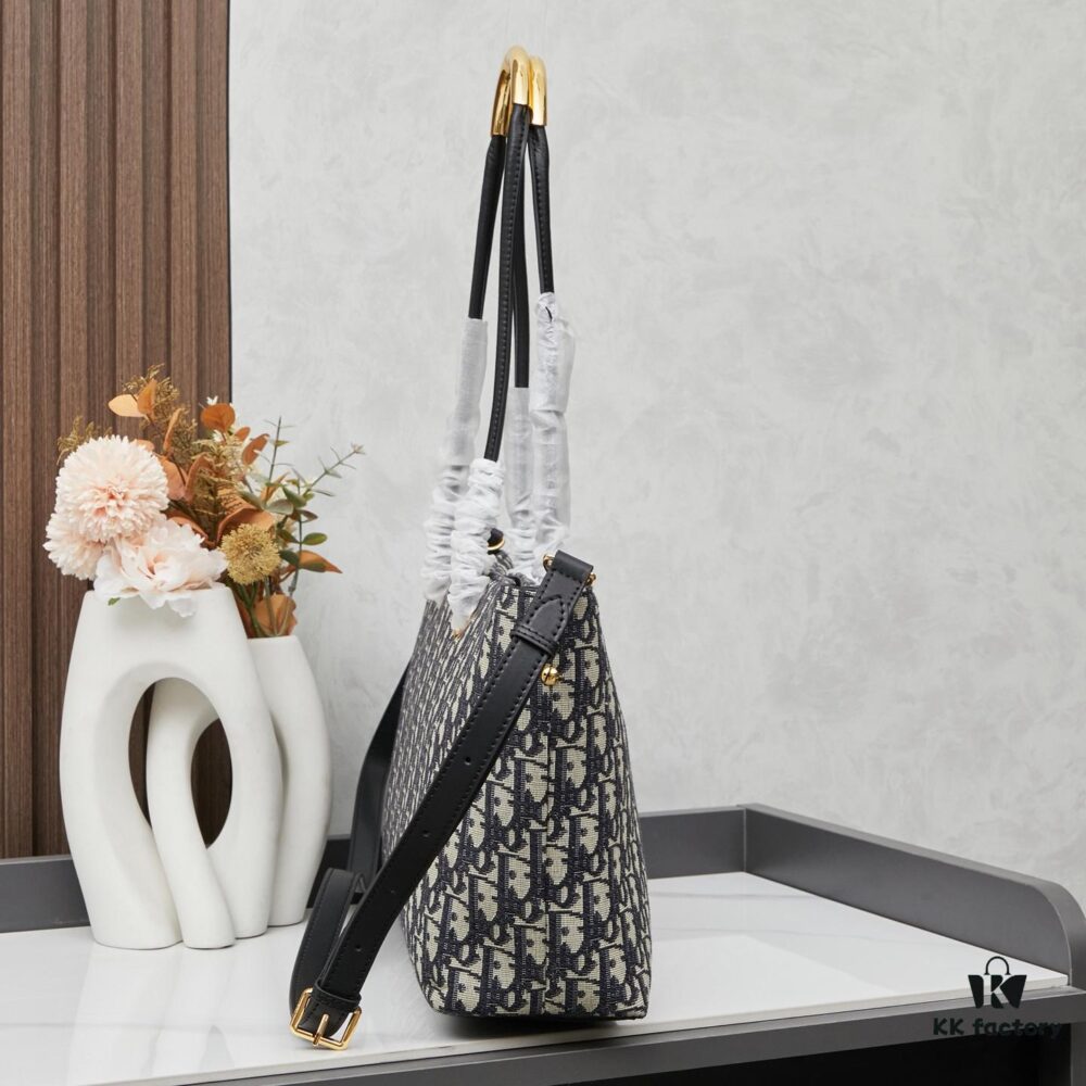DIOR Top-Quality Genuine Leather Blue Oblique Print 30 Montaigne Avenue East-West Chain Handbag