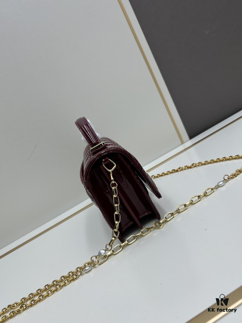 Lacquered Leather Lady Dior Pearl Clutch with Box