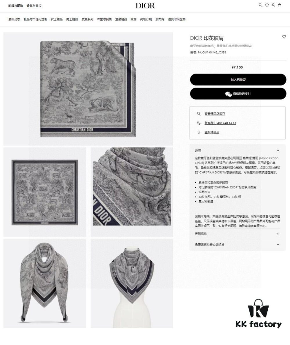 Hot Sale! Authentic High-End Dior Latest Collection ‘D Jungle Animal’ 140 Shawl – Cashmere Blend Square Scarf