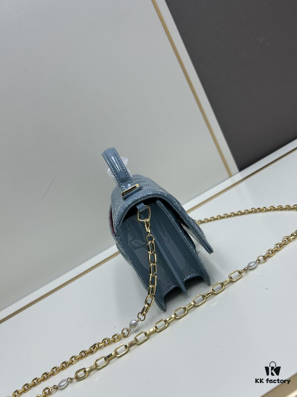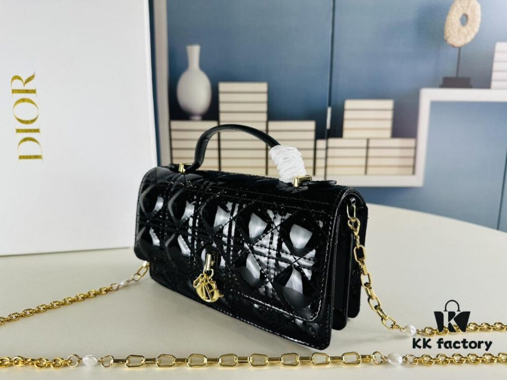 Lacquered Leather Lady Dior Pearl Clutch with Box