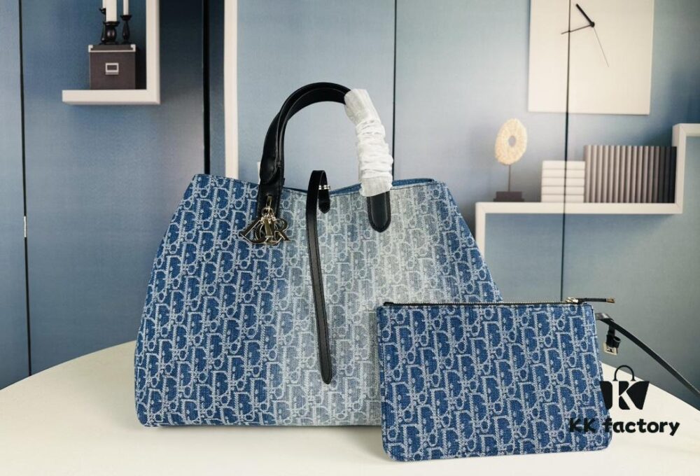 Large DIOR Dior Shopping Bag with Silk Scarf, Embroidered Edging, Limited Edition, Celebrity Style, High-End Quality