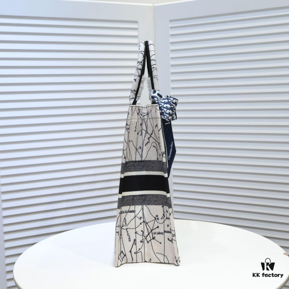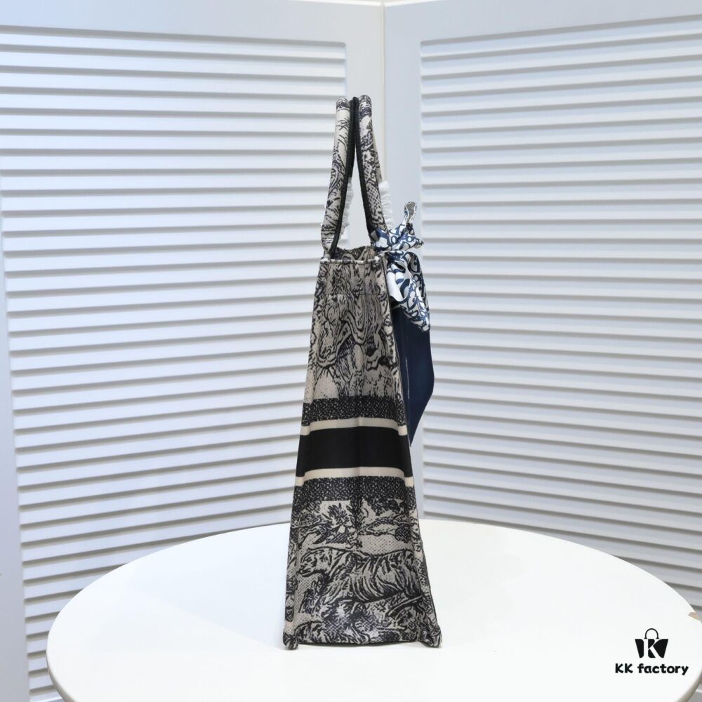 Large Dior Shopping Tote with Silk Scarf, Embroidered Edging, Limited Edition, Celebrity Style, High-End Quality, Imported Fabric