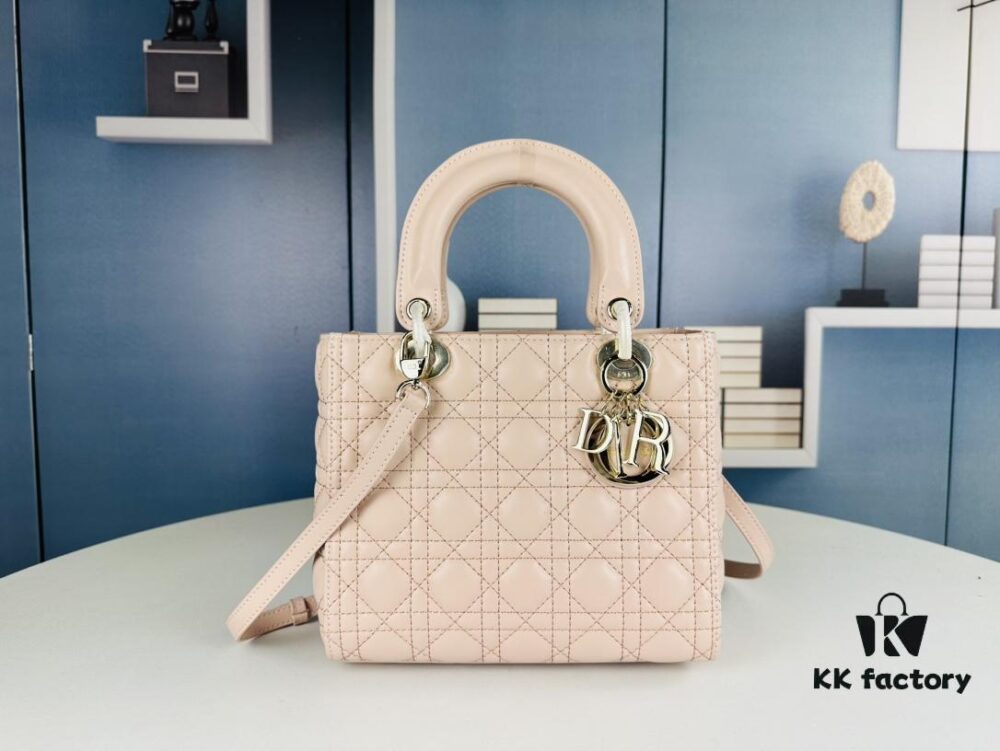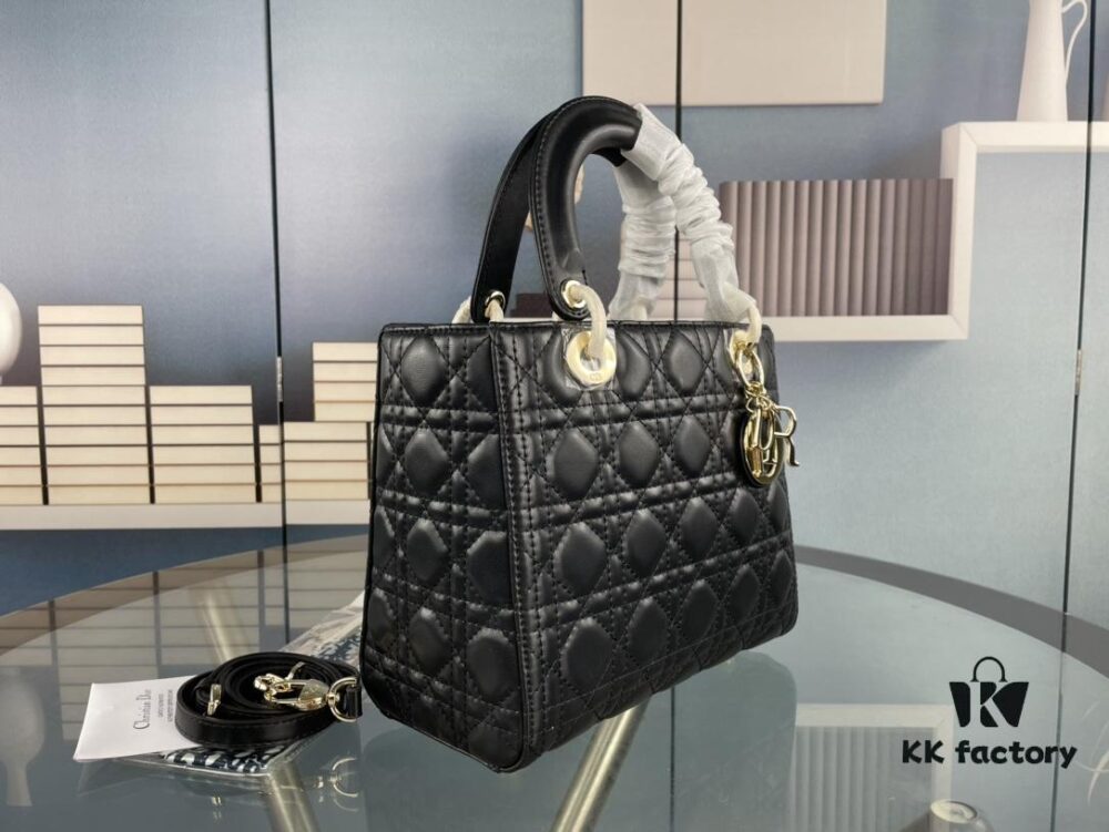 Large Lady Dior Bag with Silk Scarf, Quilted Cannage Pattern, Top-Grade Imported Leather