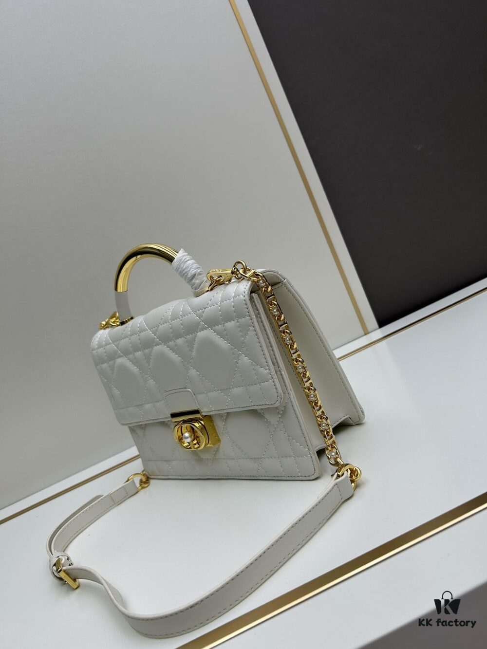 Large Lady Dior Bag with Silk Scarf, Quilted Cannage Pattern, Five-Compartment Design