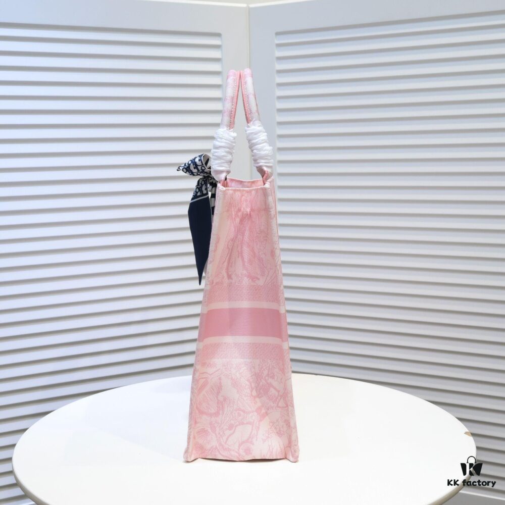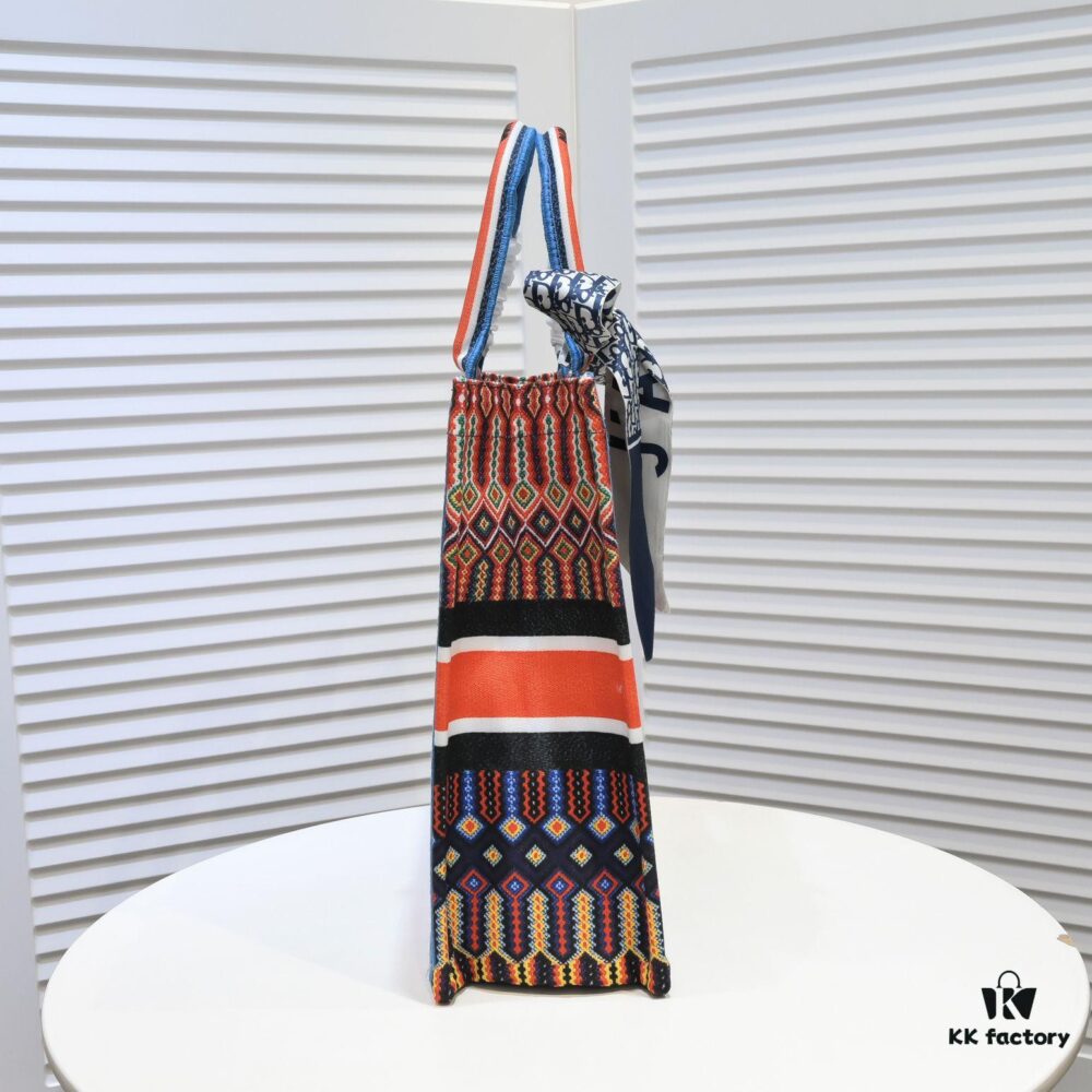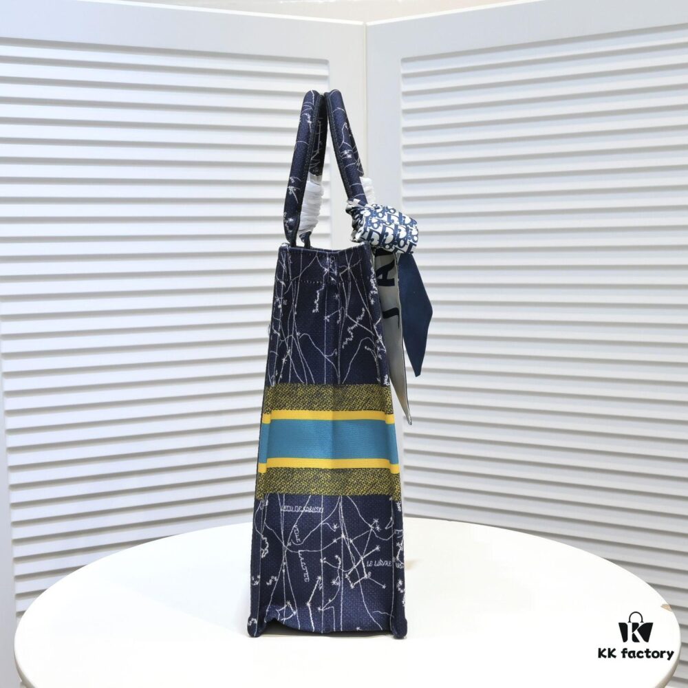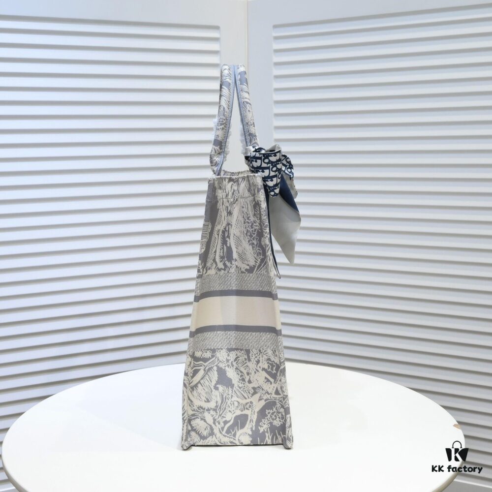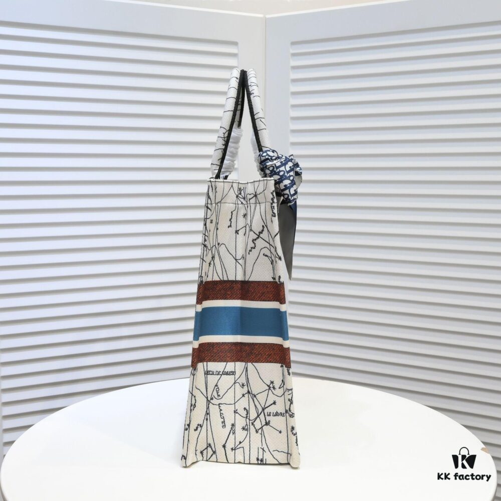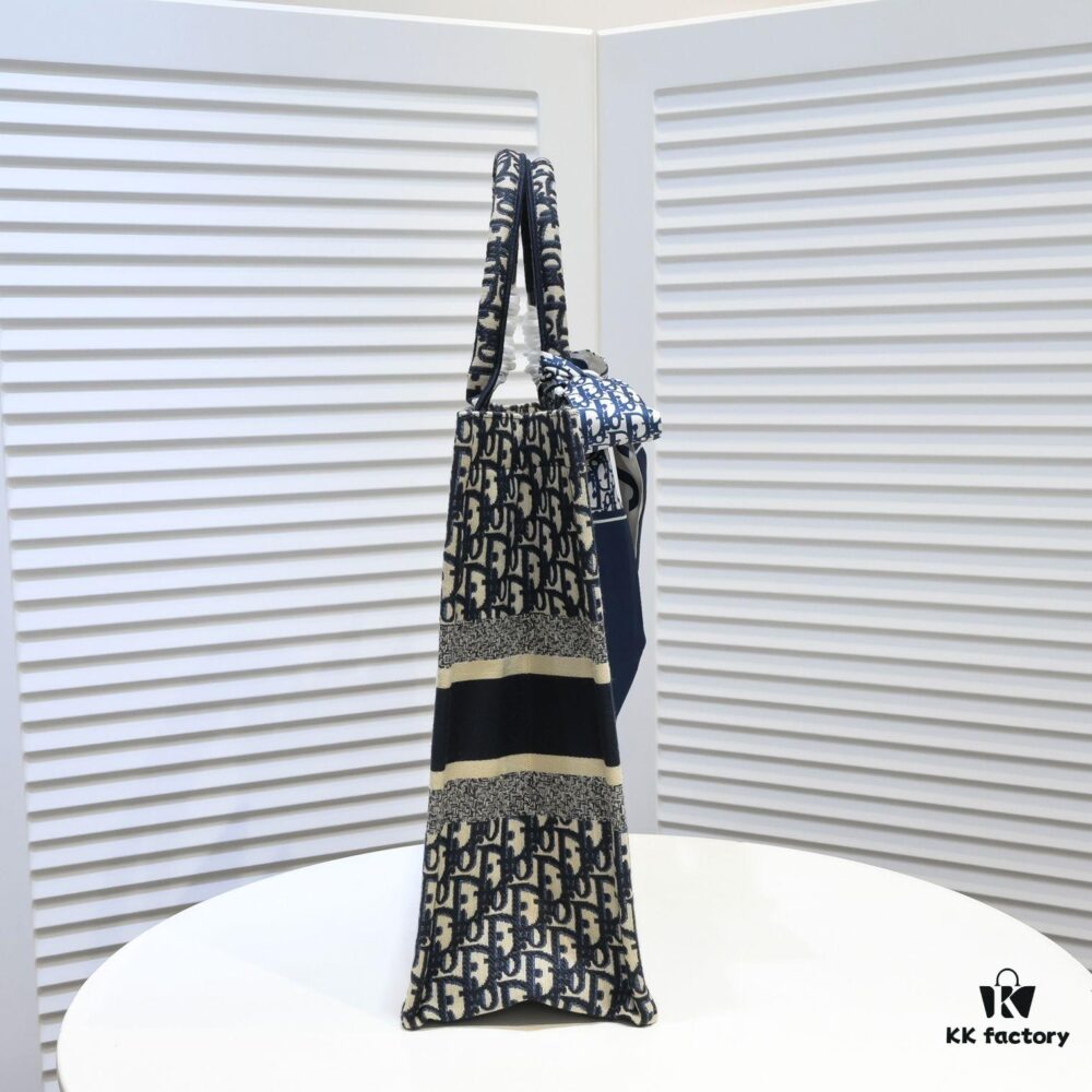 Large Size 🔥 Embroidered Edge Dior Shopping Tote with Scarf! Counter Version! Limited Edition Worn by Celebrities! Stylish and Elegant! Premium Imported Fabric, High-End Quality! Can Easily Pass as Authentic! Ideal for Outings with Extra-Large Capacity!