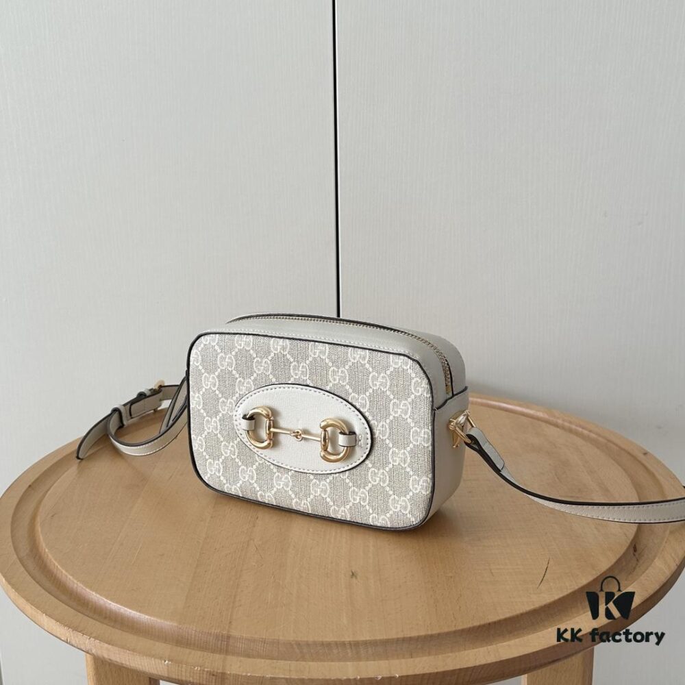 Gucci Horsebit 1955 Camera Bag Toast Shape, Item No: 760196 White Leather, Size: 20×13×6cm