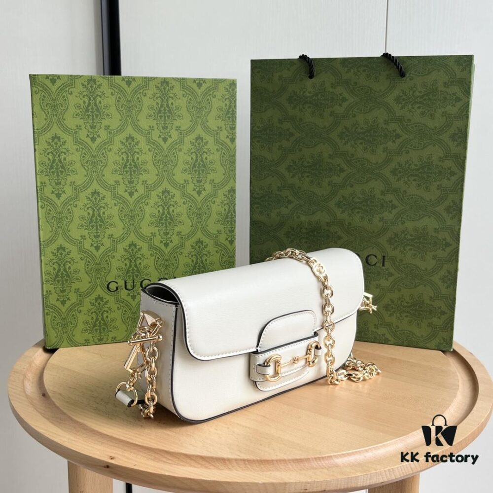 Gucci Horsebit 1955 Baguette, Model No. 735178 White Leather, Dimensions: 24 x 13.5 x 7.5 cm