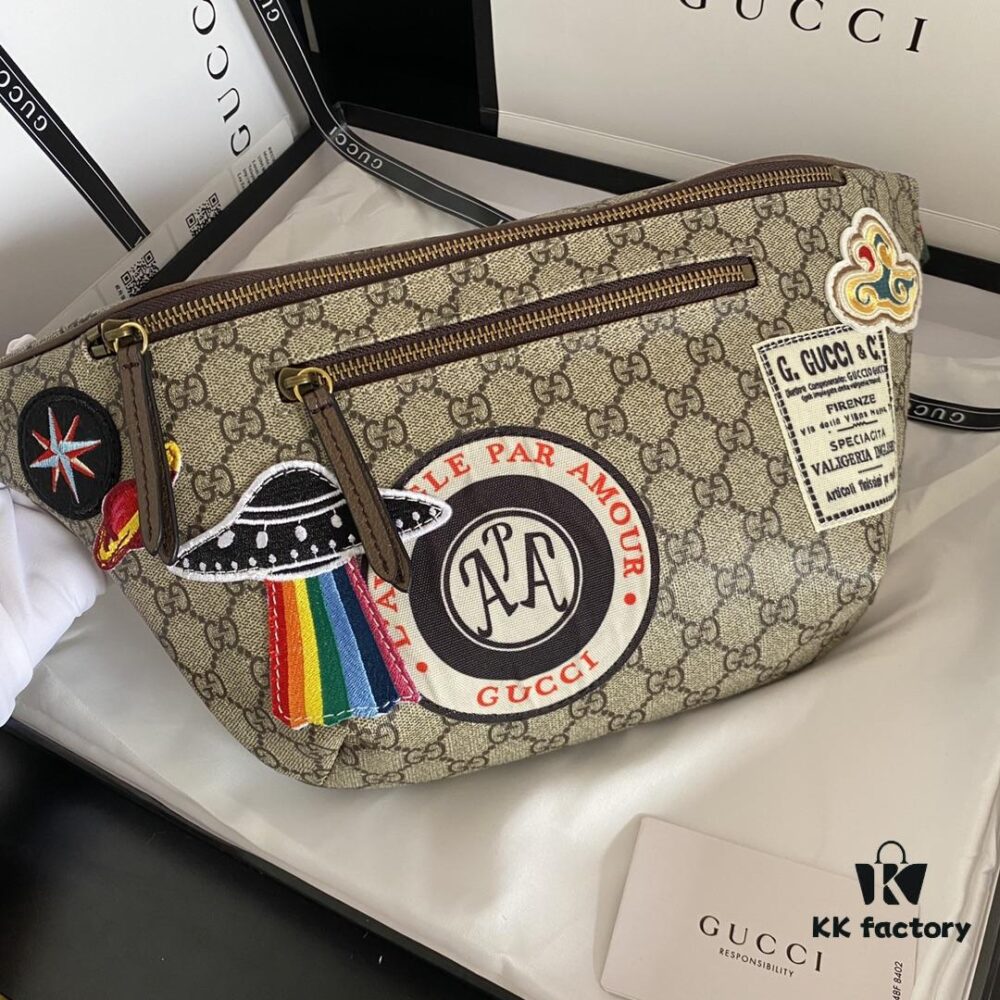 Authentic Photo # Model: 529711 Embroidered Universe Size: 28x18x8cm. GG Ophidia Inspired by Vintage Aviation Mail Style with Planet Motif Embroidery Front Pocket Design Waist Bag Crossbody Bag