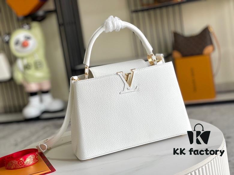 Top Grade Full Set Packaging 【Top Grade Original Factory Leather M23950💋 M23951 Black with White Gold Upgraded Hardware】【Capucines Mini Handbag】