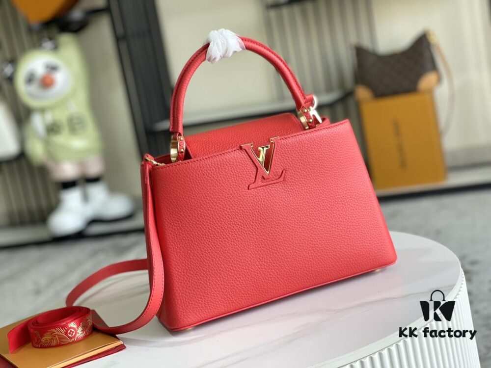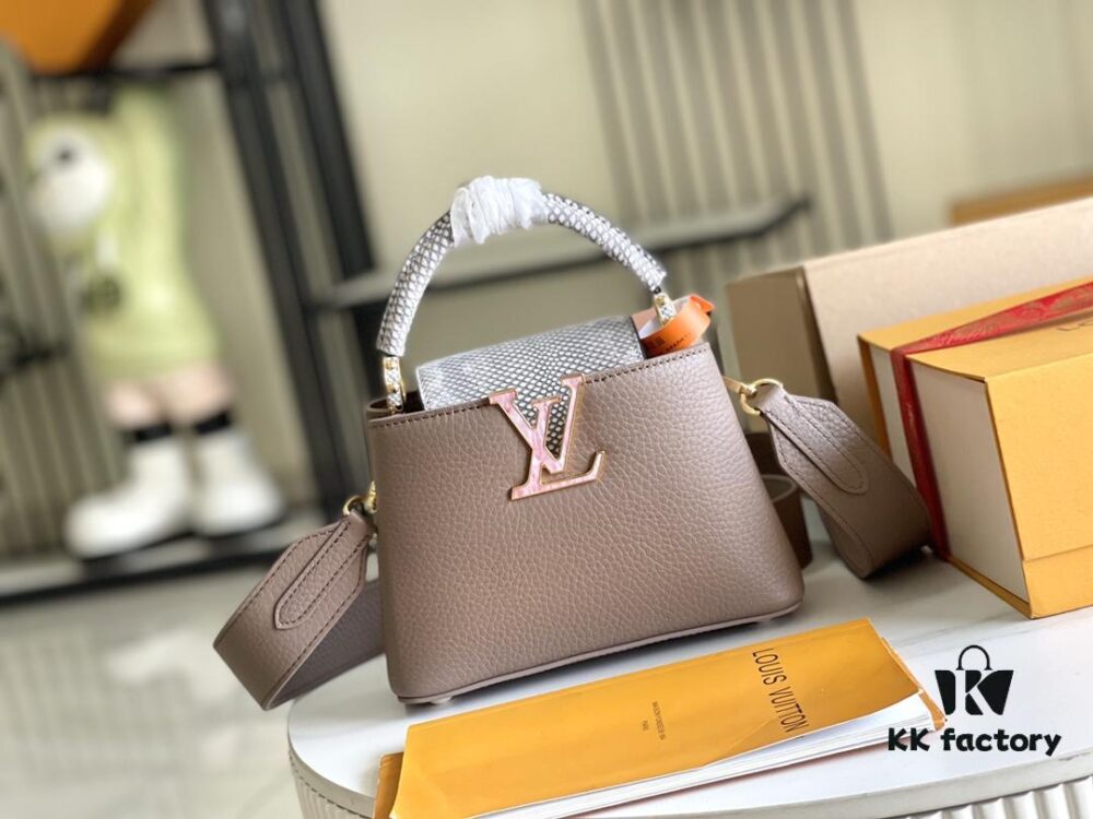 Top Grade Full Set Packaging 【Premium Original Factory Leather M24567💋 M23331 Elephant Gray Upgraded Hardware】 Capucines Small Handbag