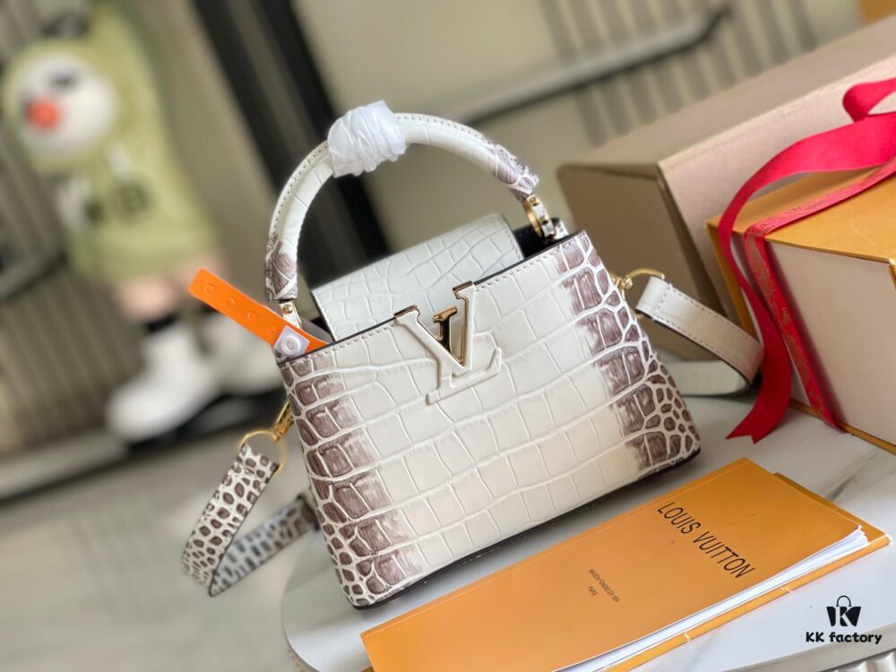 Top Grade Original Guangzhou Stock M12296 Beige Lizard Leather Combined with Golden Diamond Crown 🔺 This Capucines Mini Handbag Features Luxurious Lizard Leather Exterior with Soft Lambskin Lining, Accented with Brilliant Metallic Hardware