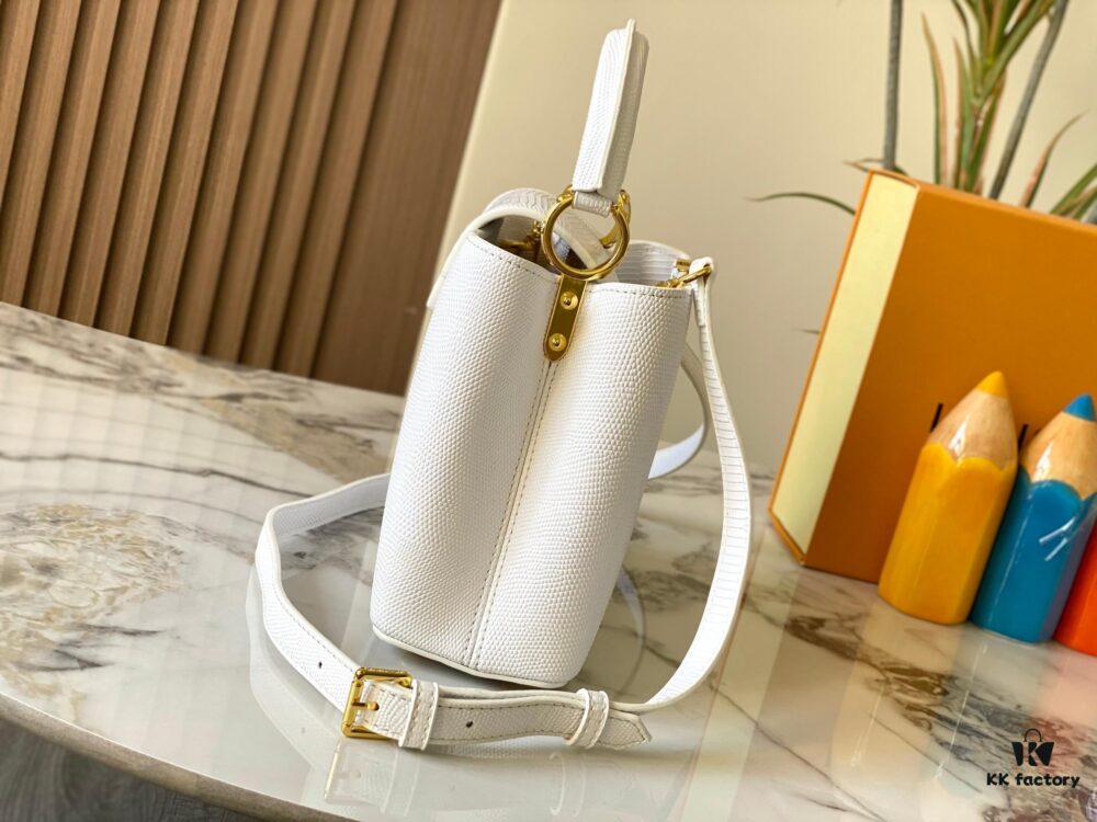 Top Quality Original Guangzhou M99528 White Lizard Skin Gold Buckle Capucines BB Handbag