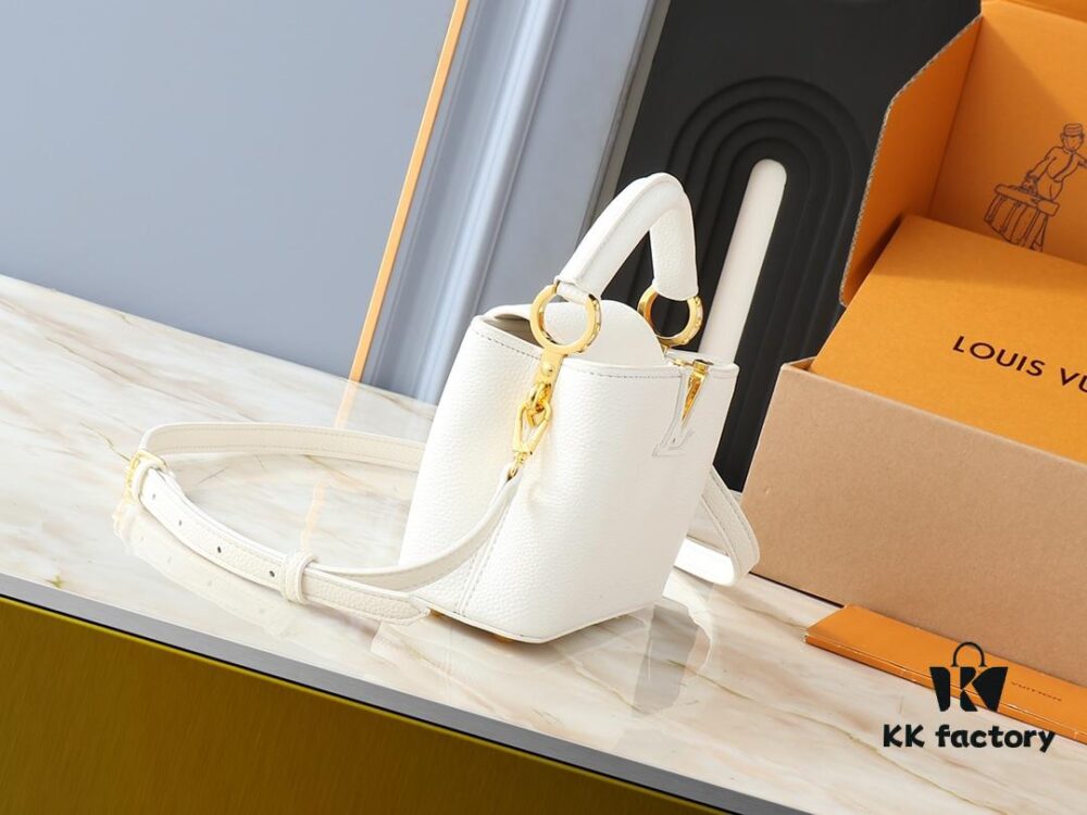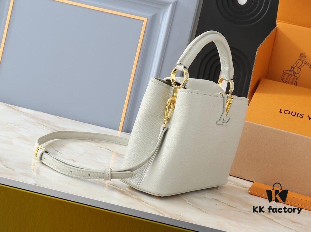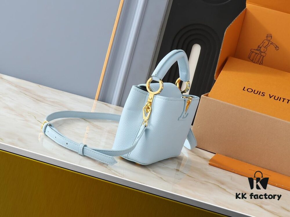 Upgraded Original M24728 M24736 M25087 M24655 M24656 M24733 M24729 M25090 M12785 M24727 M24745 This Mini Capucines Bag is crafted from refined Taurillon calf leather, accented with a lustrous handle ring and the signature LV letter motif to enhance its compact silhouette. The detachable shoulder strap allows for versatile styling as a shoulder or crossbody bag. Dimensions: 21.0 x 13.6 x 8.0 cm (L x H x W)
