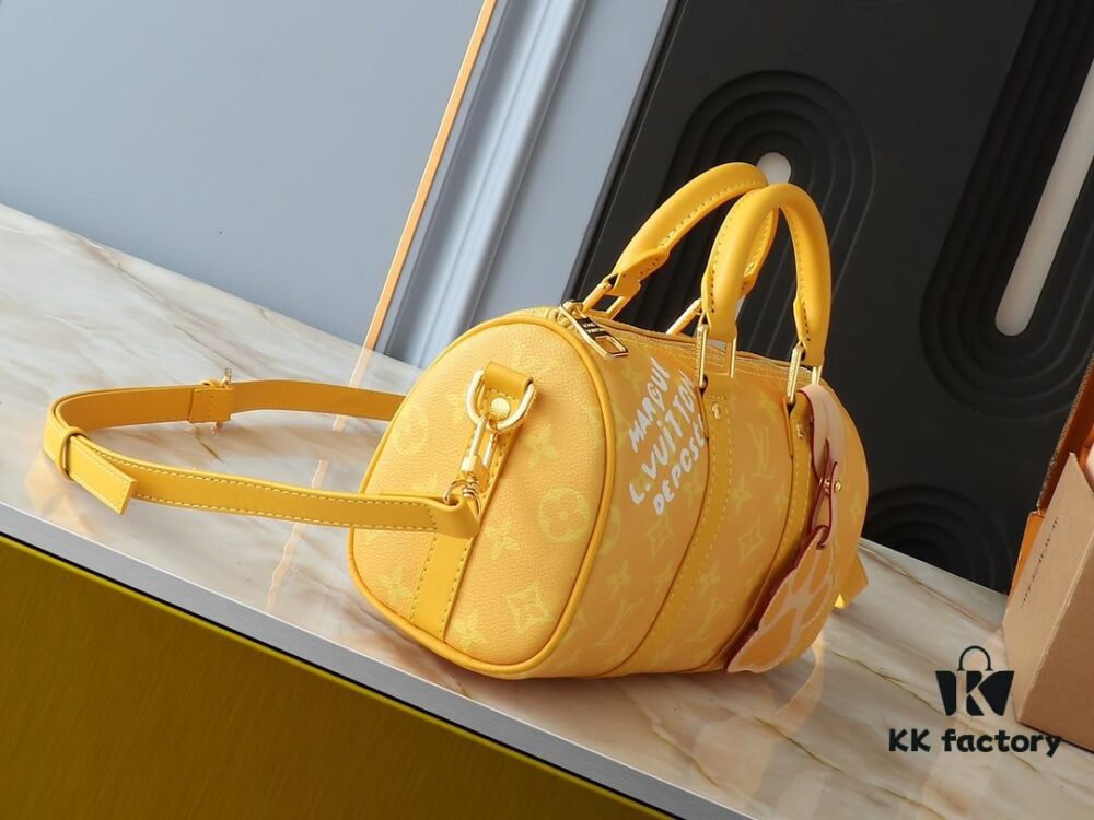 Upgraded Original M46271 Black Flower Orange Chain, Denim Blue, M31044 Orange, M11542 Monogram, M24849 Multicolored Daisy Keepall 25 Handbag