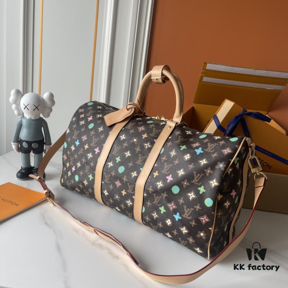 Upgraded Version 250 M24901 Coffee Rainbow M24233 White Rainbow, This Year’s Hottest LV X YK Keepall 50 Combines Classic Design with Iconic Details