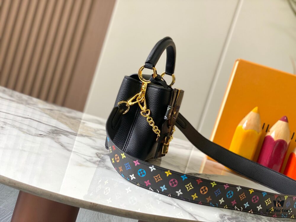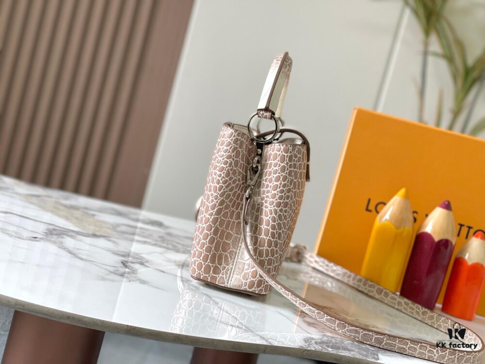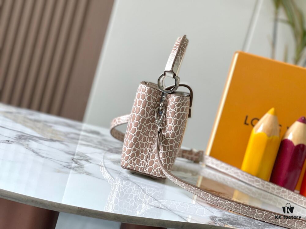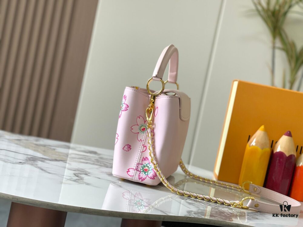 Guangzhou Stock Top Quality Original Capucines Mini Model: 13249 Pink Material: Canvas with Graffiti Hardware Upgraded Features: LV Initials, Unique Edge Ring, Exquisite Monogram Flower on Flap