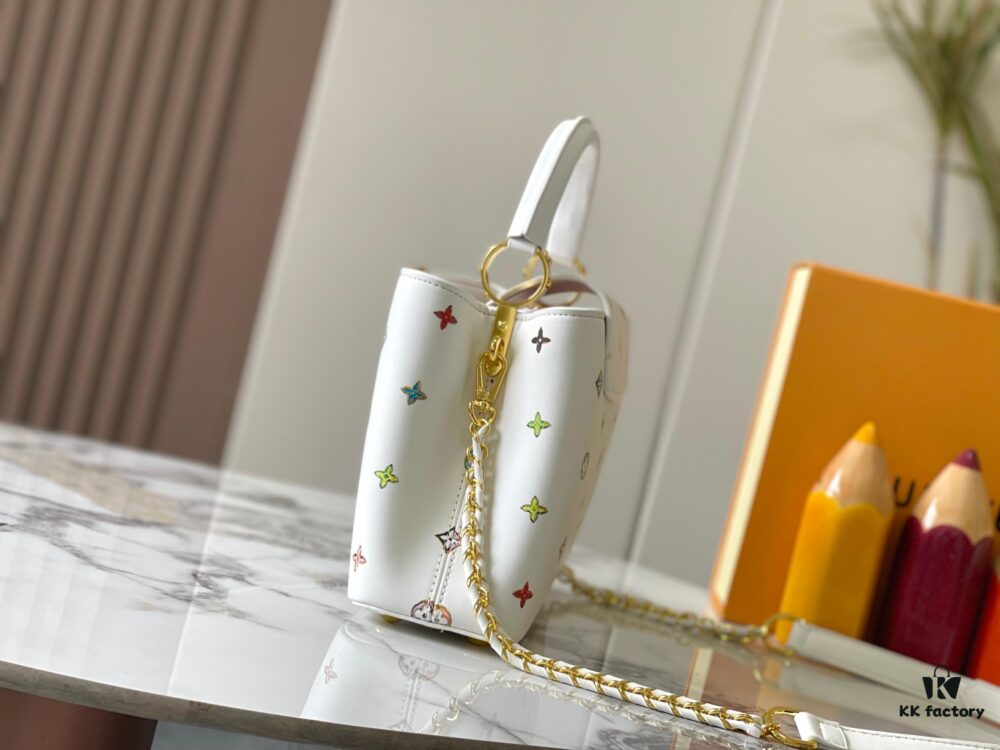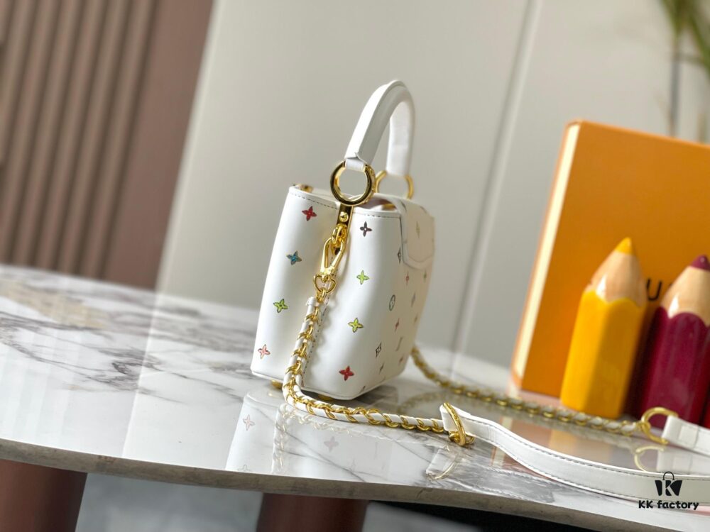 Guangzhou Stock Top Quality Original Capucines Mini Model: 14165 White Material: Canvas Graffiti Hardware Upgraded Features: LV Initials, Unique Edge Ring, Exquisite Monogram Flower on Flap