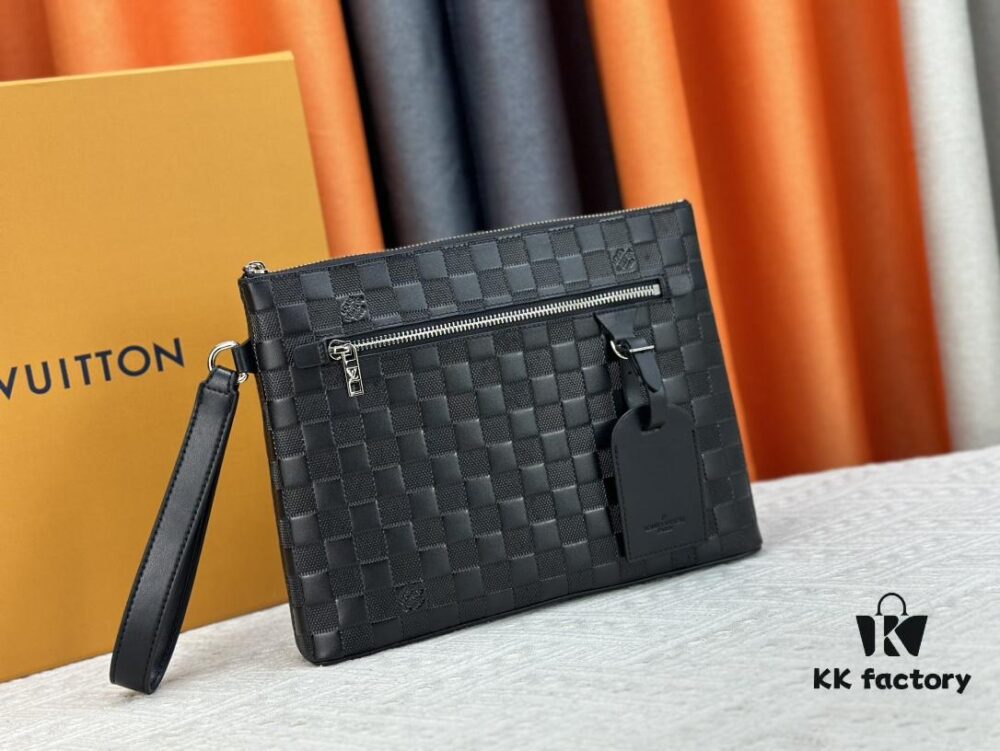 iPad Clutch Bag designed for the latest tablet models. Crafted in LV Aerogram leather, soft as vintage airmail paper, with an LV-lettered corner. Features a detachable wrist strap for easy carrying. 30.0 x 22.0 x 5.0 cm (length x height x width)