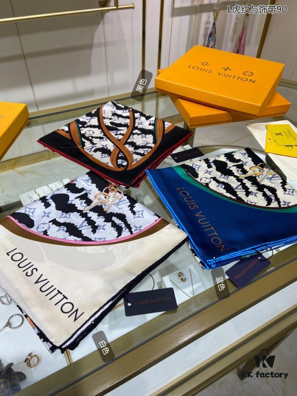 Luxury LV Monogram Tiger Stripe Silk Scarf – Premium Quality 100% Twill Silk 90x90cm